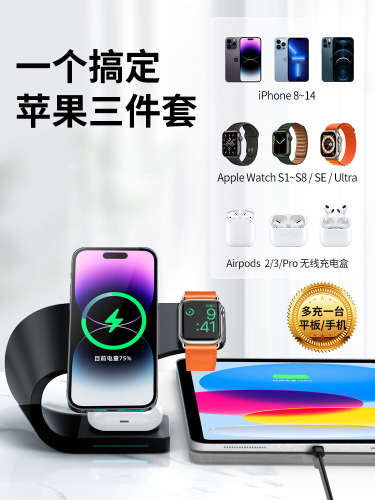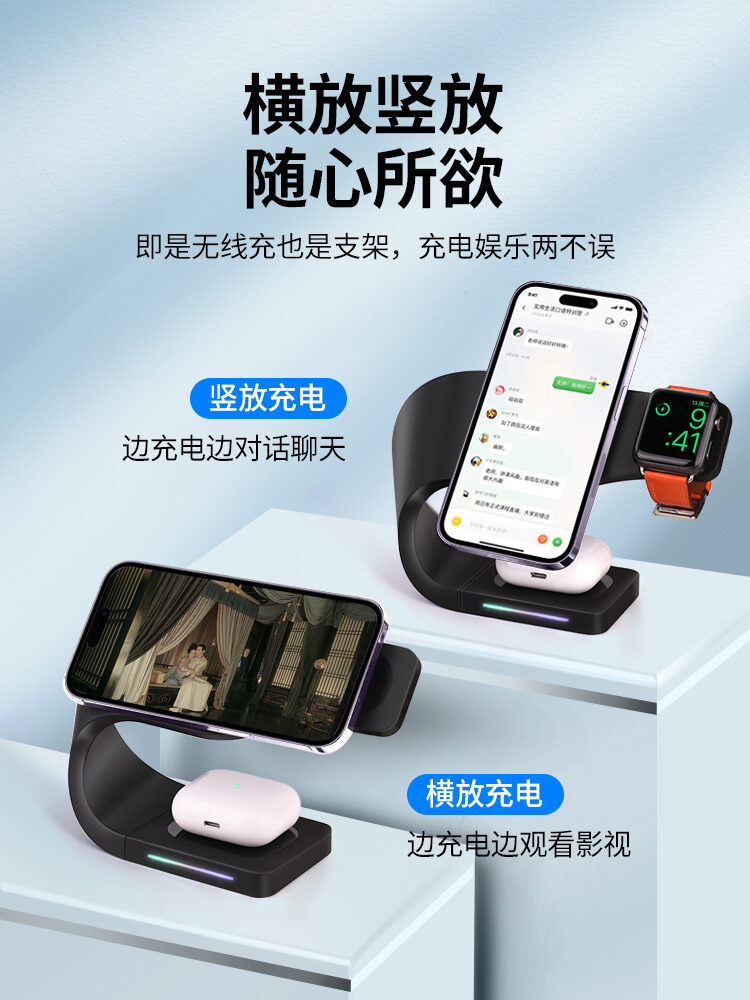 MagSafe Magnetic Bracket Three-in-One for Apple 14/13 Watch IWatch Headset AirPods Pro Wireless Charger Fast Charging Pd15w Base Iphone12 Magnetic Charging
