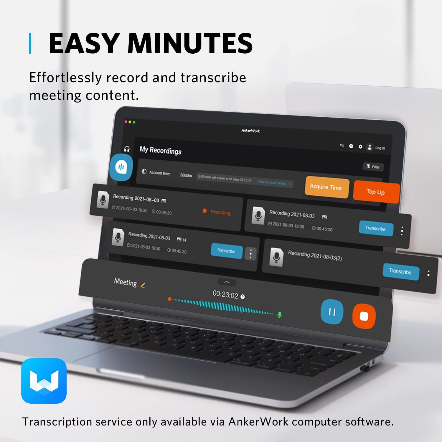 600 minutes of meeting recording transcription are included, valid for 2 months from activation. Further use requires an additional fee.