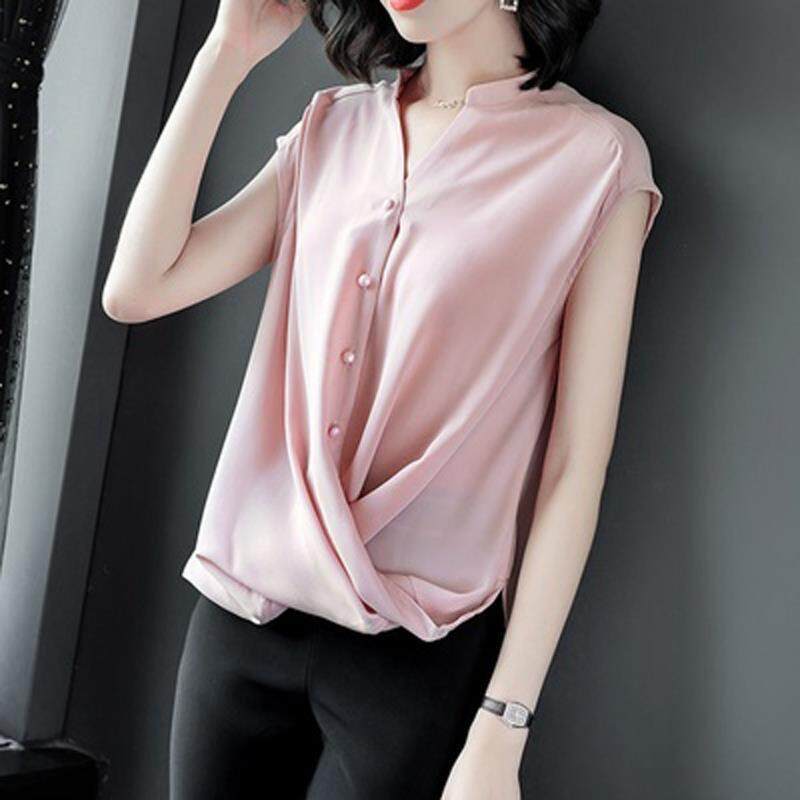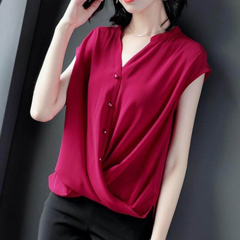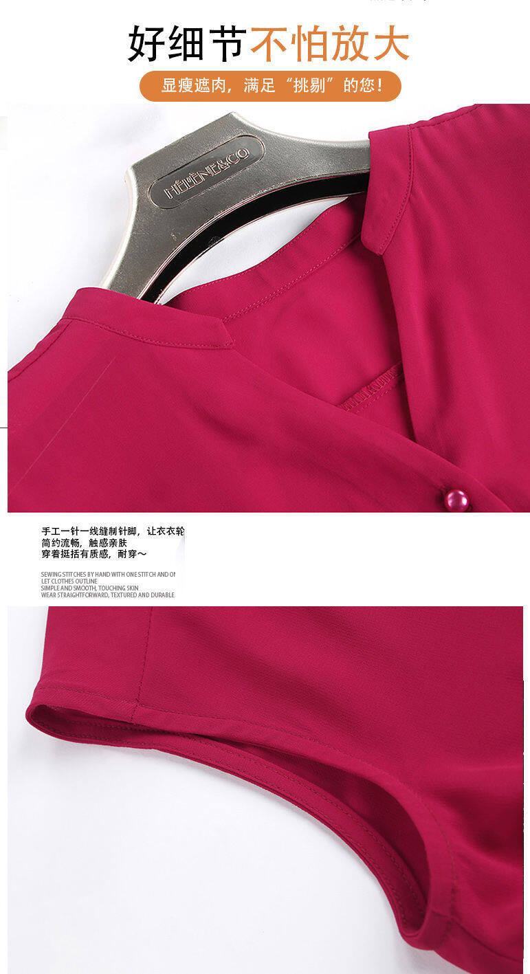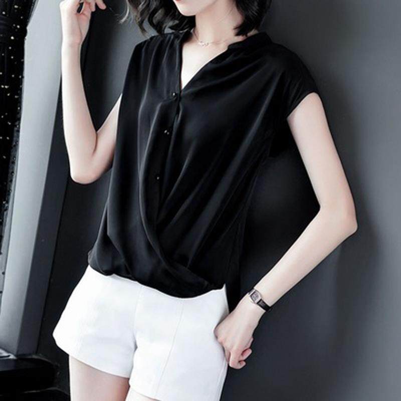 Blouse for Women V-Neck Chiffon Solid Loose Short Sleeve Women's Pullovers Shirts Summer Office Lady Plus Size Korean Style Top
