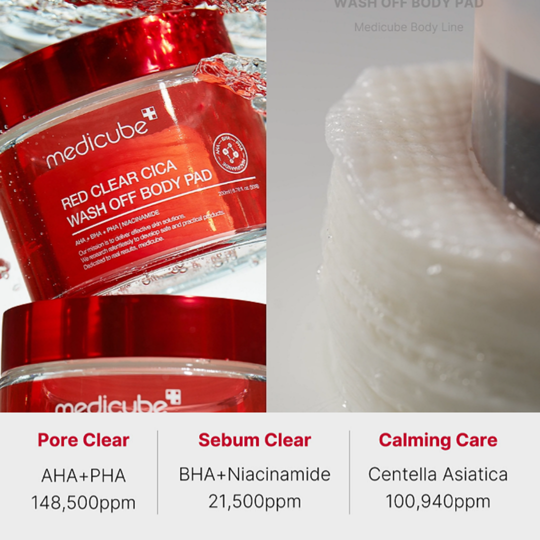 Item name : (Medicube) Red Clear Cica Wash Off Body Pad (50 pads / 200ml)