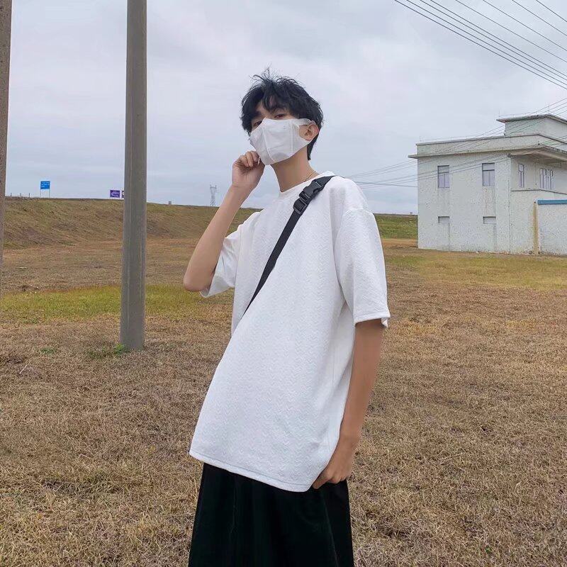 Waffle t shirt Men 2022 New Korean Style Oversize Plain Fashion Tops Loose Casual t-shirt