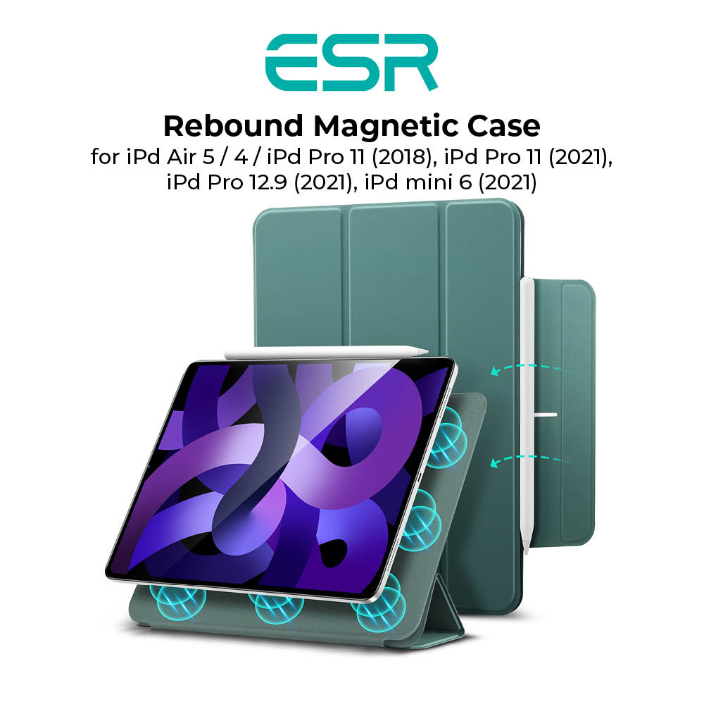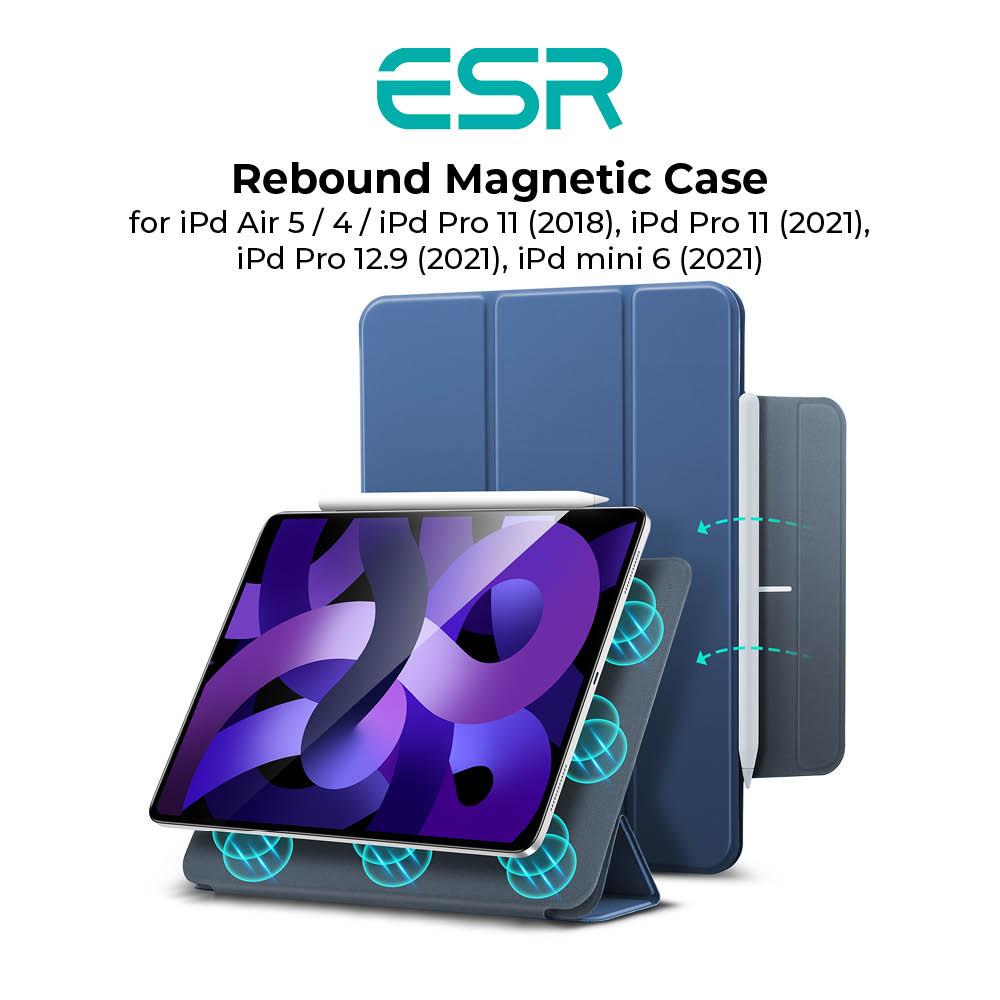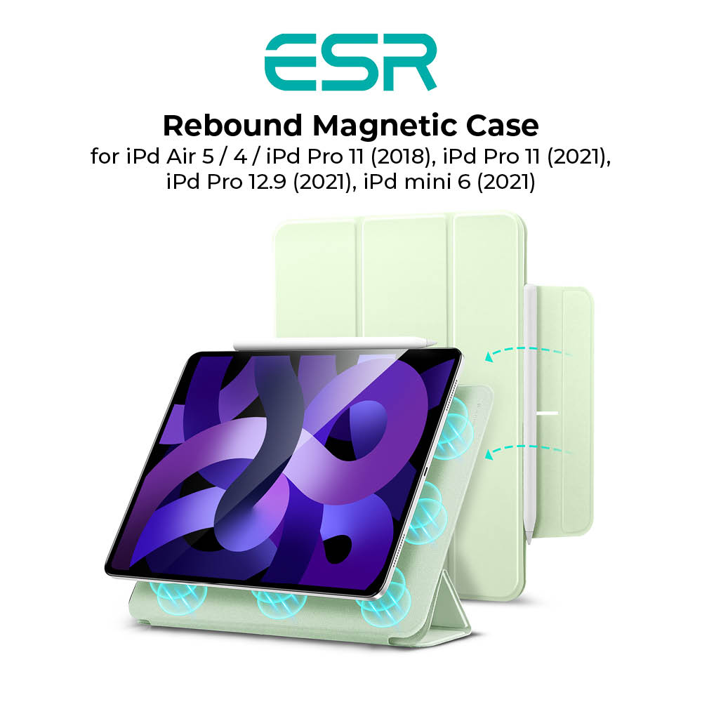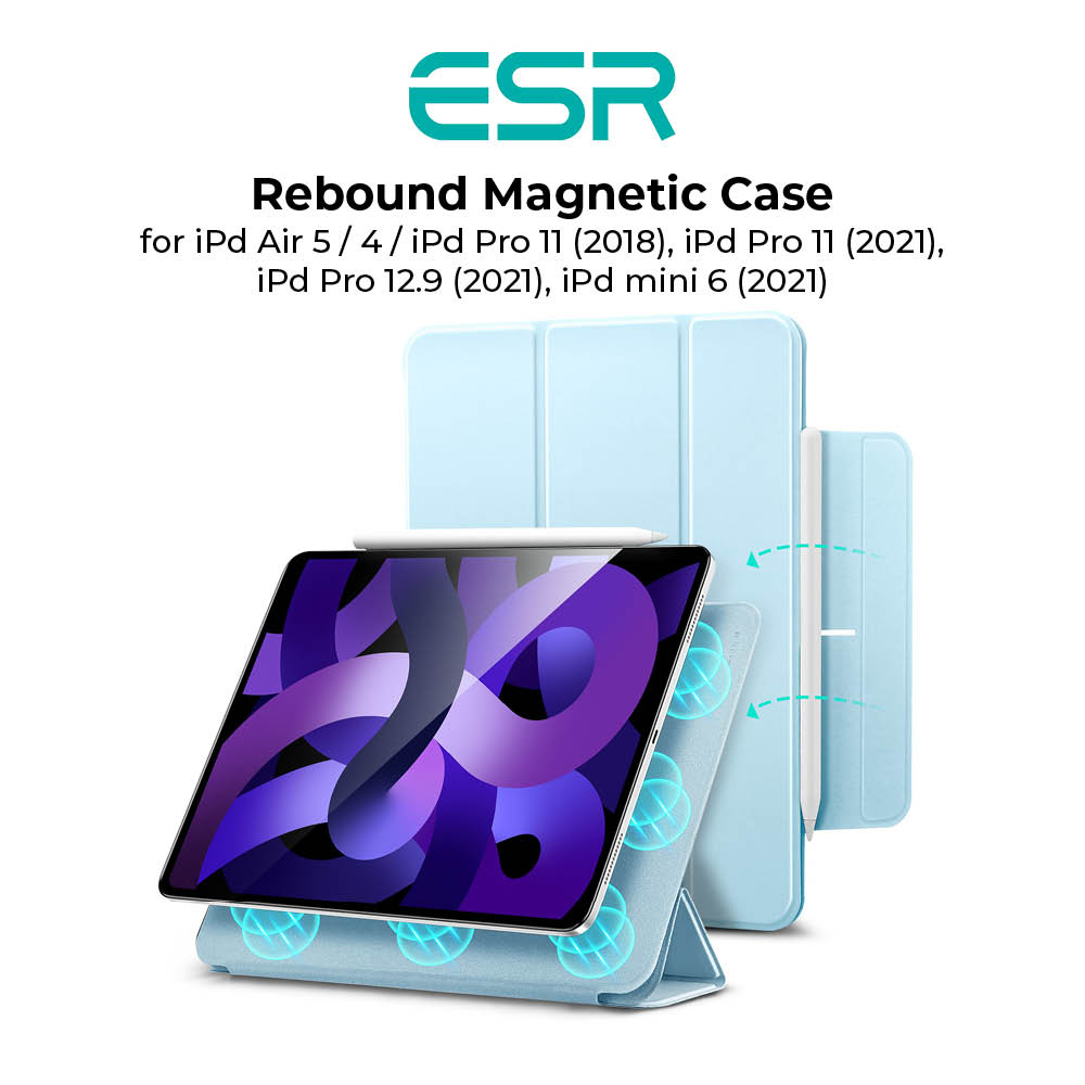 ESR Rebound Magnetic Smart Case for iPad Air 5 2022 iPad Air 4 [Supports Apple Pencil Pairing & Charging] Smart Case Cover, Auto Sleep/Wake Trifold Stand Case