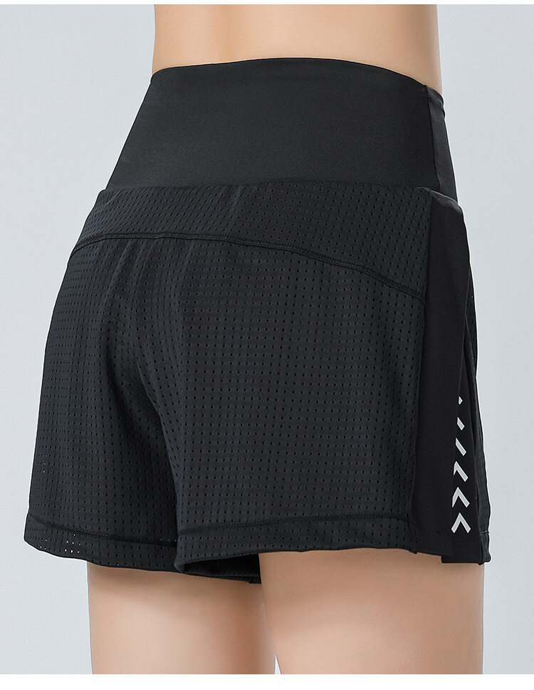 2022 Summer High Stretchy Sport Shorts Women High Waist Fitness Yoga Shorts Casual Outer Wear 2 Layers Running Short Pants with Pockets Breathable Loose Training Pants Hot Pants