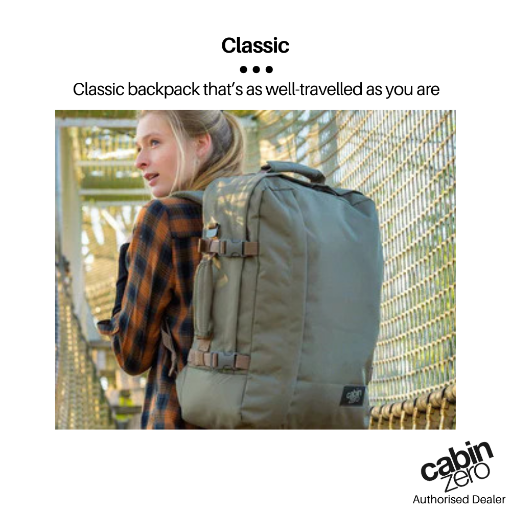 CabinZero bags are not only great for carrying on your back but they also come with a comfortable top and side grab handles on our classic and vintage collections. Want to carry your bag like a suitcase then these handles make it easy and comfortable to do so.