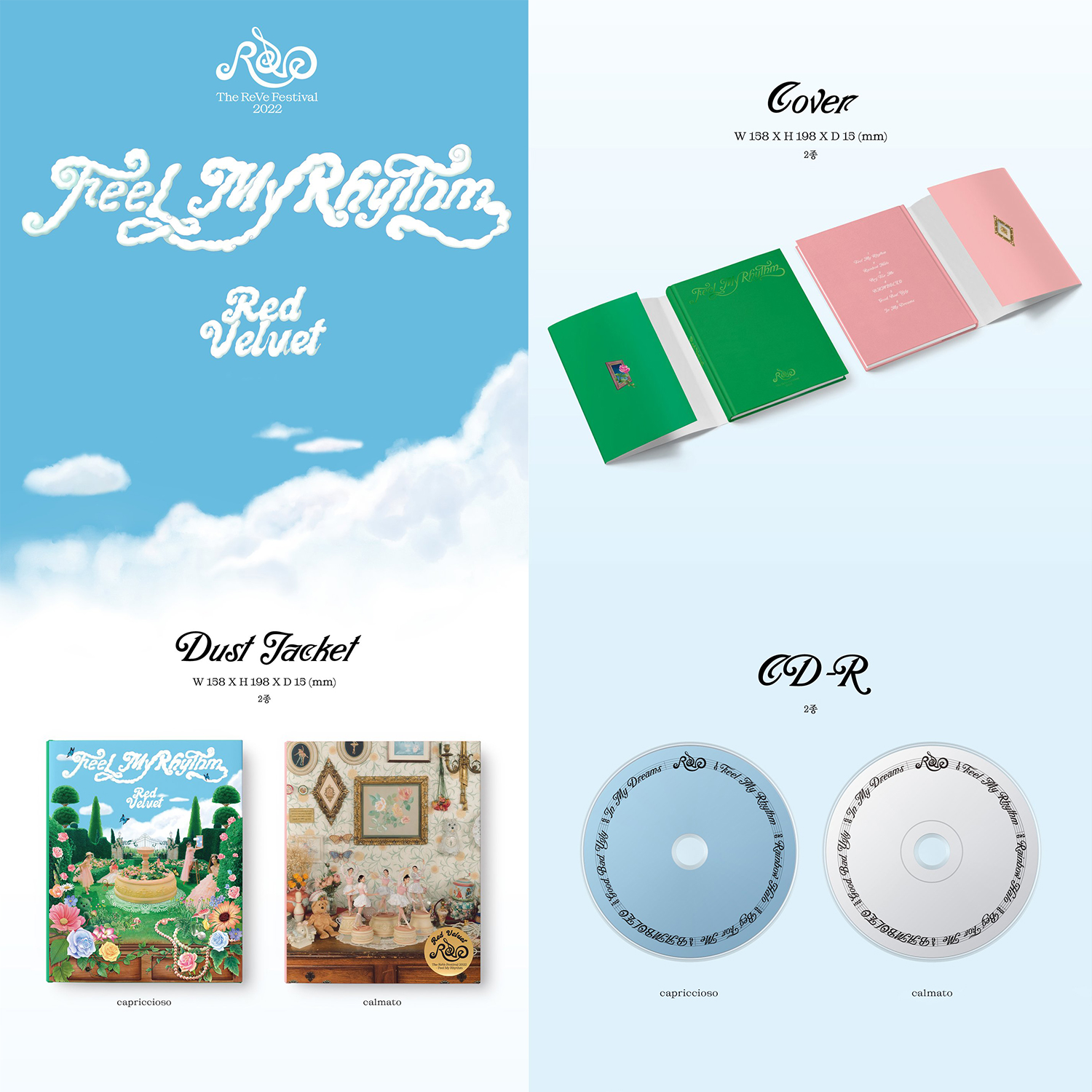❥ Red Velvet - Mini Album [The ReVe Festival 2022 - Feel My Rhythm] ✿ FEATURES ✿ □ Release Date ■ 2022.03.22 □ Version ■ ReVe Ver. (2 Type) □ Components [ReVe Ver.](capriccioso / calmato) ■ Dust Jacket (2 Type) ■ Cover (2 Type) ■ CD-R (2 Type) ■ 108p Photobook ■ Sticker (Random 1 out of 2) ■ Book Mark (Random 1 out of 5) ■ Folded Poster (Random 1 out of 5) ■ Photocard (Random 1 out of 10) ■ Poster (Random 1 out of 3) * Poster is Optional ⯌ FREE GIFT ❥・•Only TrendK Store Gift~❥ ? 2 Red Velvet Print Badges ? 4 Extra Photocards ✶ Free gift's image may change without notice. ✶ Even if you purchase multiple albums, only one of the same Free Gift is provided.