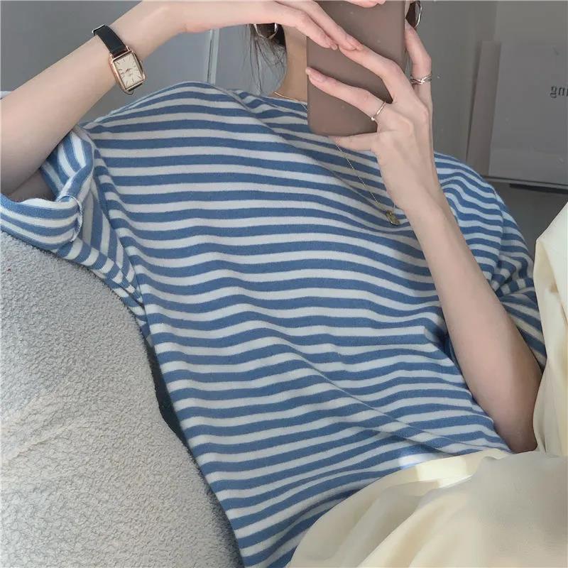 EDQRDQ Womens Striped Tops Plus Size Raglan Shirt 3/4 Sleeve Short Sleeve Striped Crew Neck Tshirt