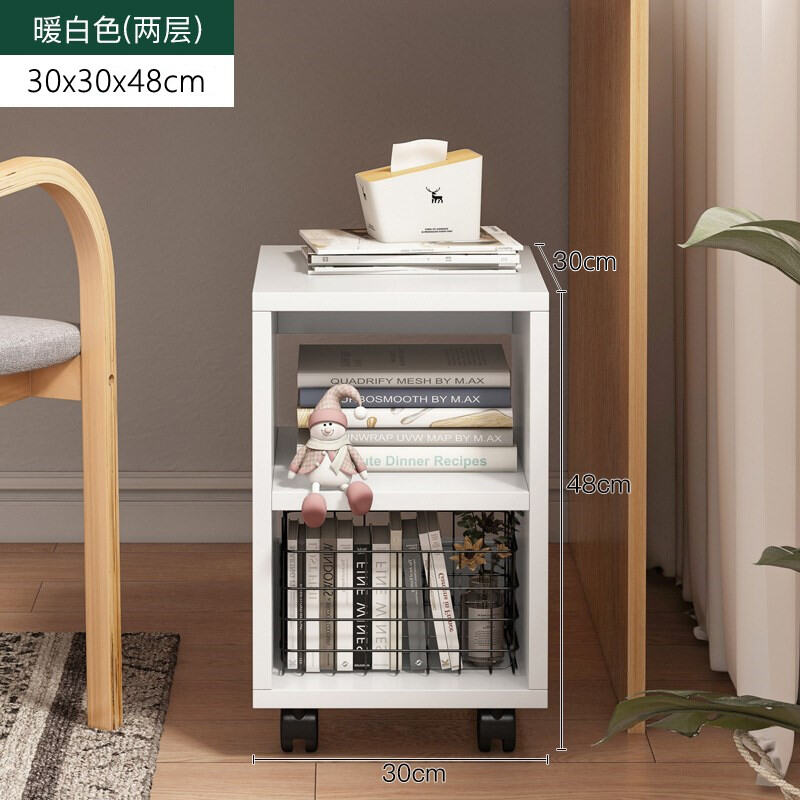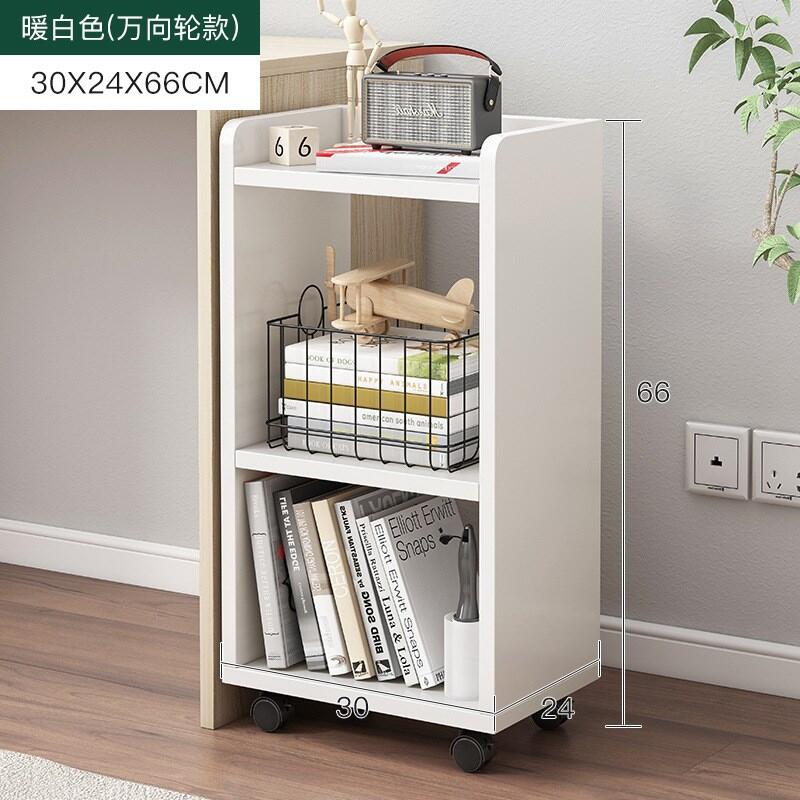 Table-Side Bookshelf Movable Small Wheeled under-Table Storage Cabinet Bedroom Floor Storage Bedside Small Bookcase Narrow Cabinet Short
