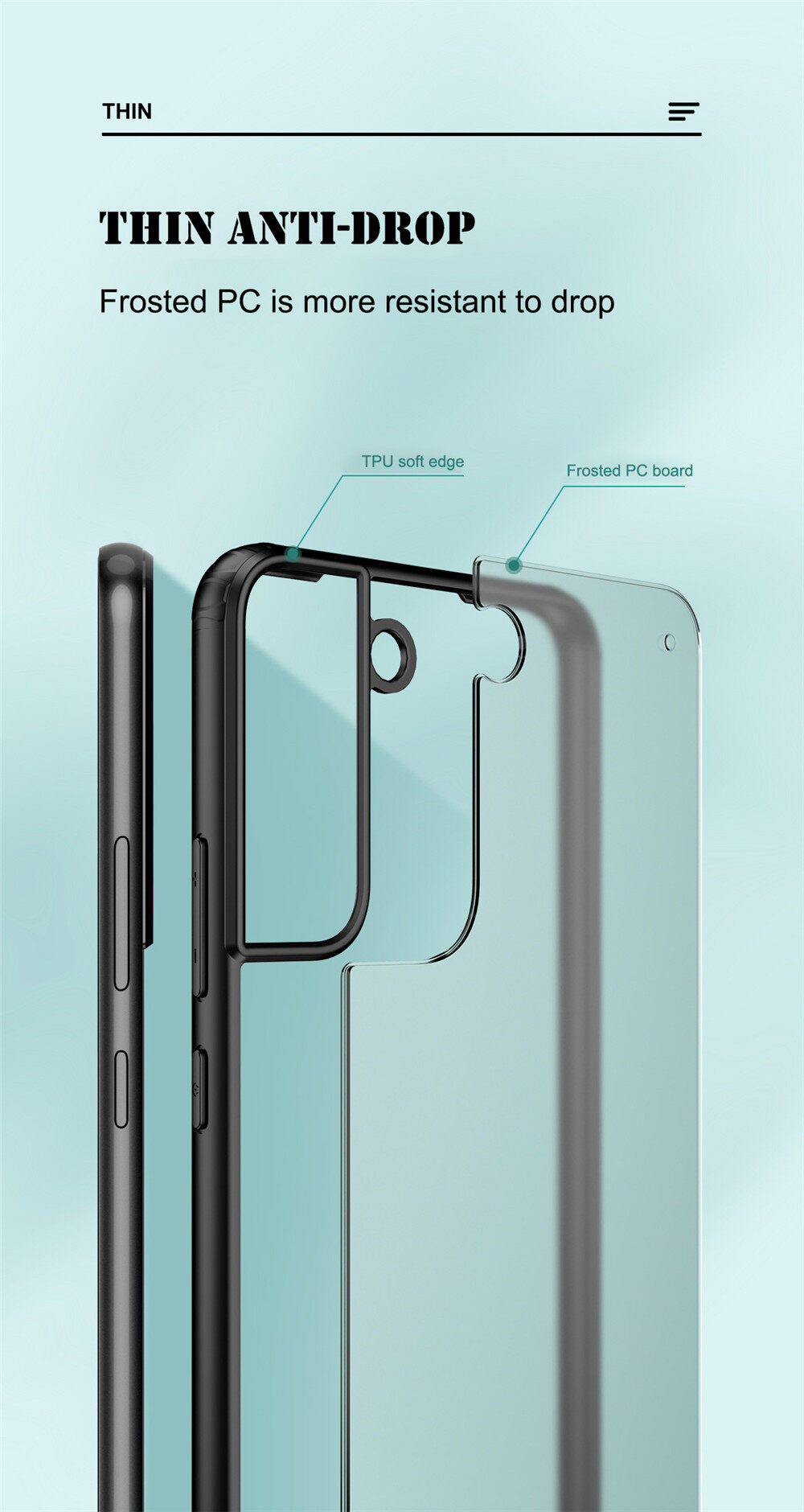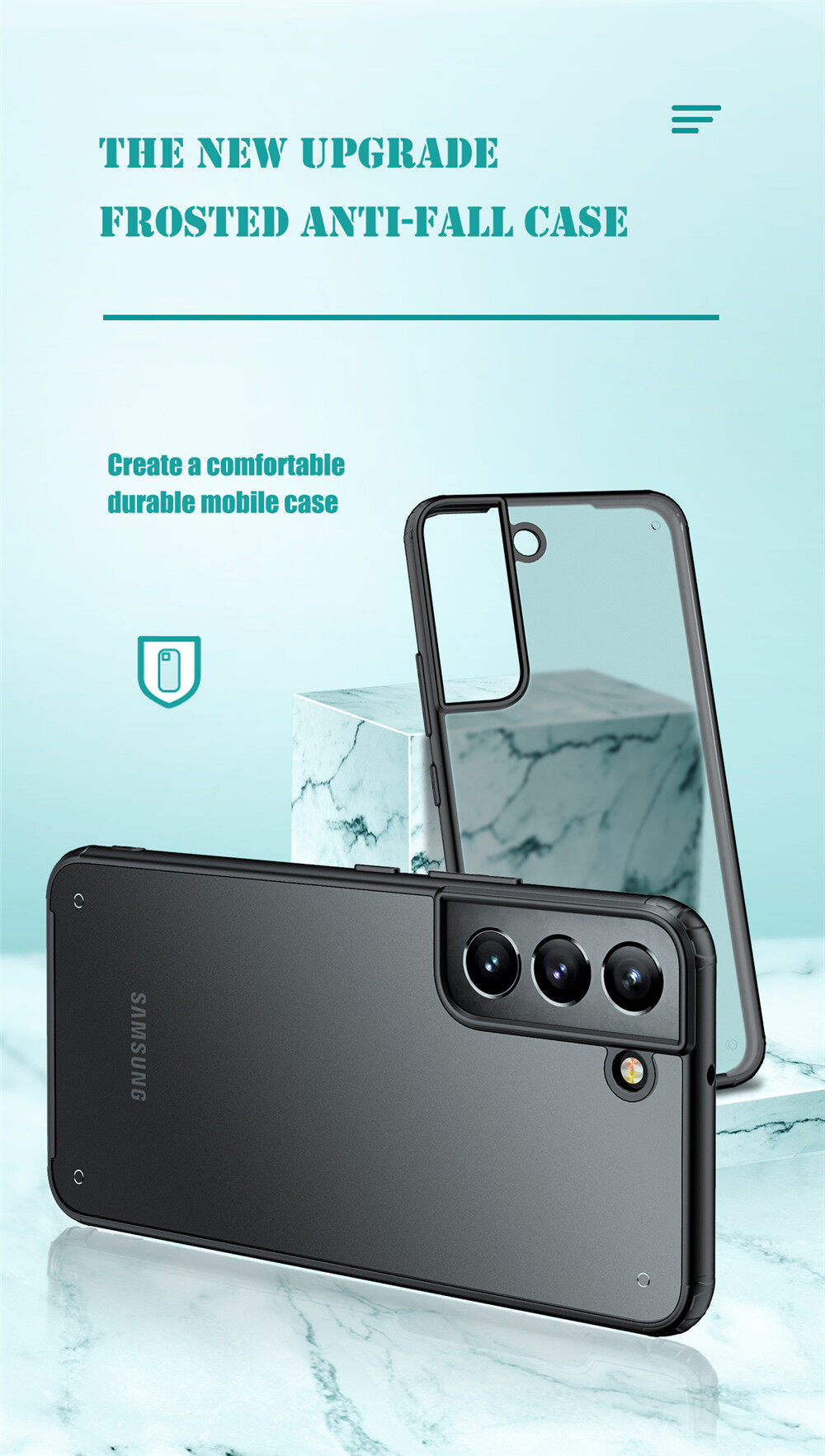 Lenuo for Samsung Galaxy S22 / S22+ / S22 Plus / S22 Ultra Case - 4-corner Shockproof Protection Flexible Silicon Bumper + PC Frosted Semi Transparent Back Cover
