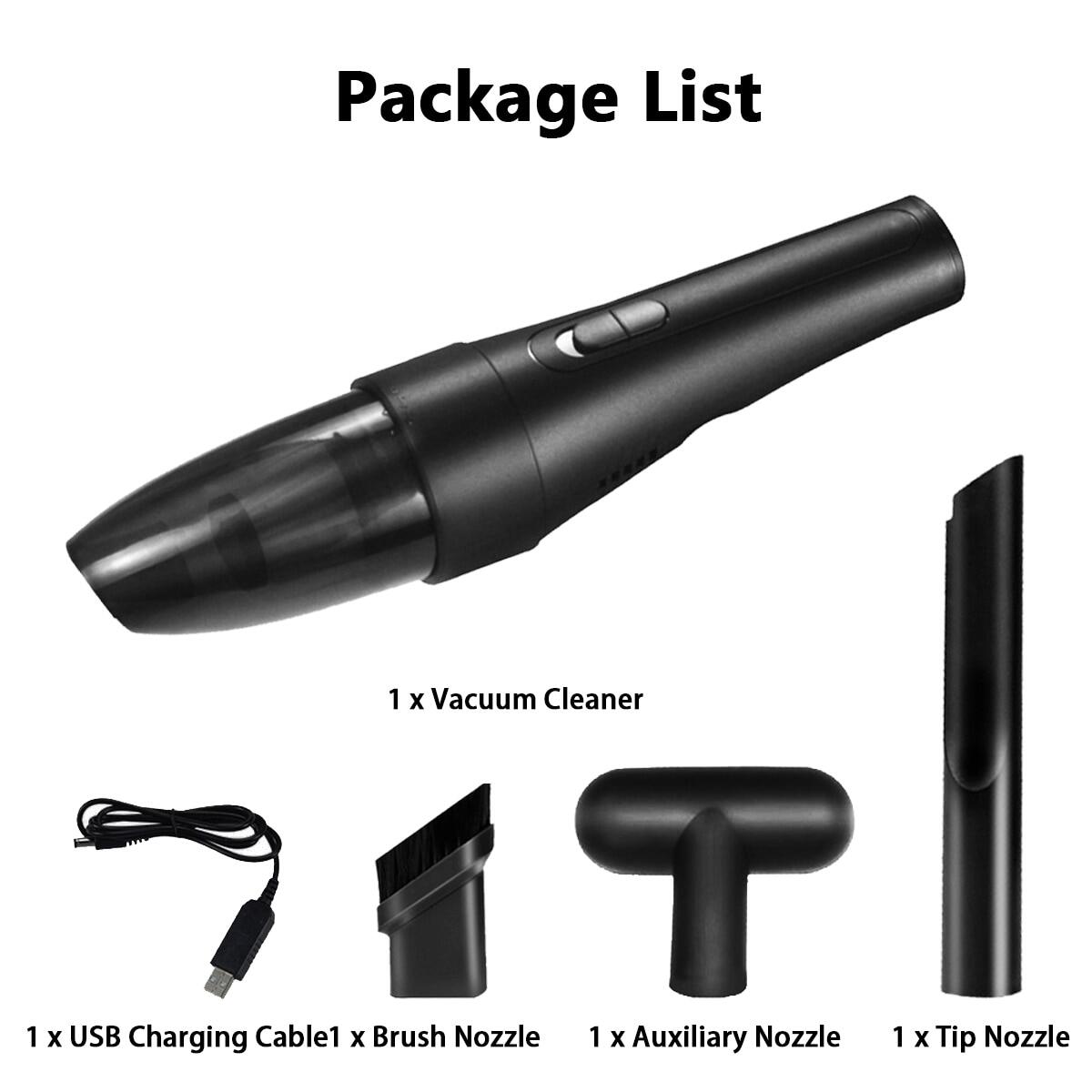 | Features: - 120W high power, 24000Pa powerful motor, long-term use does not heat, good stability. - Strong suction seconds to clean, can absorb all kinds of debris, coins, soot, water stains, etc. - Equipped with a variety of brush head accessories, which can clean every corner, gap, floor mat, and trunk of the car seat. - Low noise operation, double noise reduction, quiet vacuuming. - The dust filter screen is washable, and the filter screen does not need to be replaced for repeated use. Specifications: Product Name: Handheld Vacuum Cleaner Material: ABS Color: Black Voltage: 7.4V Power: 120W Suction: 24000Pa Battery Capacity: 4000mAh Size: 24.7*7.2*15.7cm/9.7x2.8x6.2in Weight: 365g Package Included: 1 x Vacuum Cleaner 1 x Auxiliary Nozzle 1 x Brush Nozzle 1 x Tip Nozzle 1 x USB Charging Cable Precautions: - When the vacuum cleaner is not working, please check the plug is in good contact, check the plug fuse is it disconnected. - To clean the vacuum cleaner filter, otherwise it will affect the vacuum effect. - The filter can be cleaned and used repeatedly. |