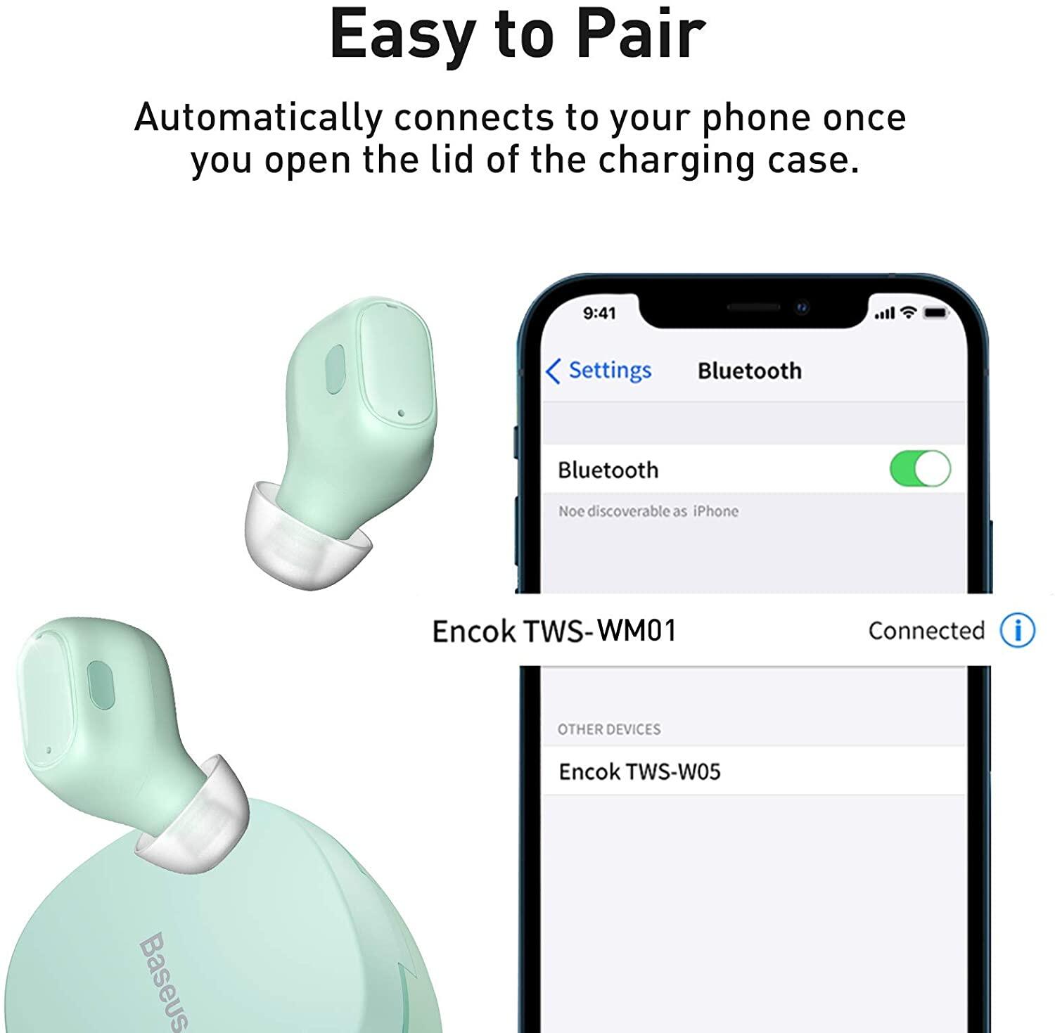 Baseus WM01 &WM01 TWS Earphones Pro Bluetooth 5.0 Wireless Earphones Smart Noise Reduction Wireless Earbuds in-Ear Mini Wireless Bluetooth Headphones Samsung S20 Huawei Xiaomi Earbuds