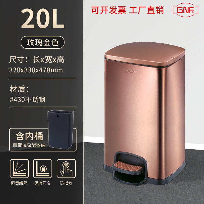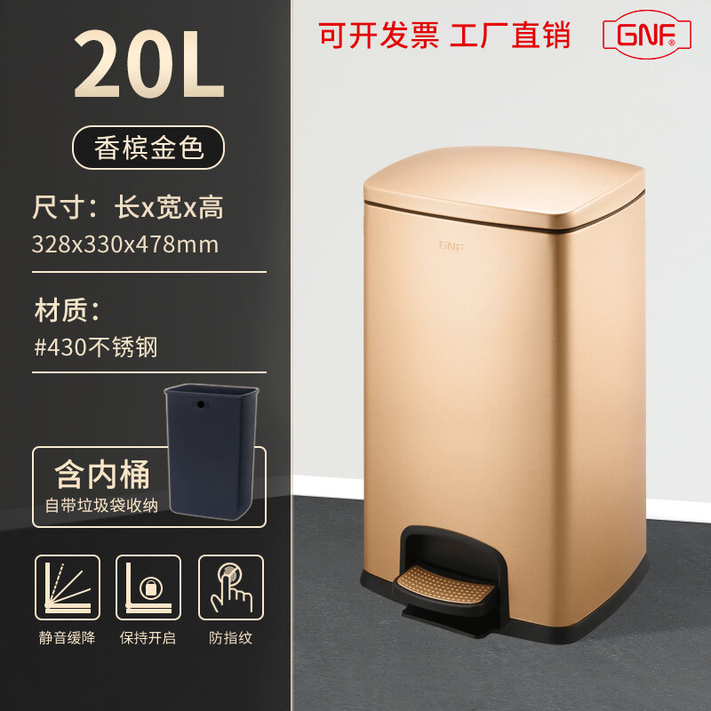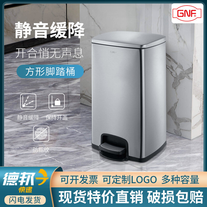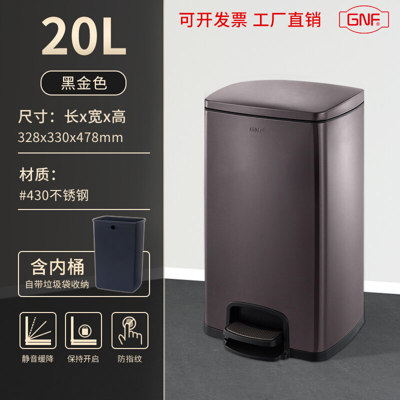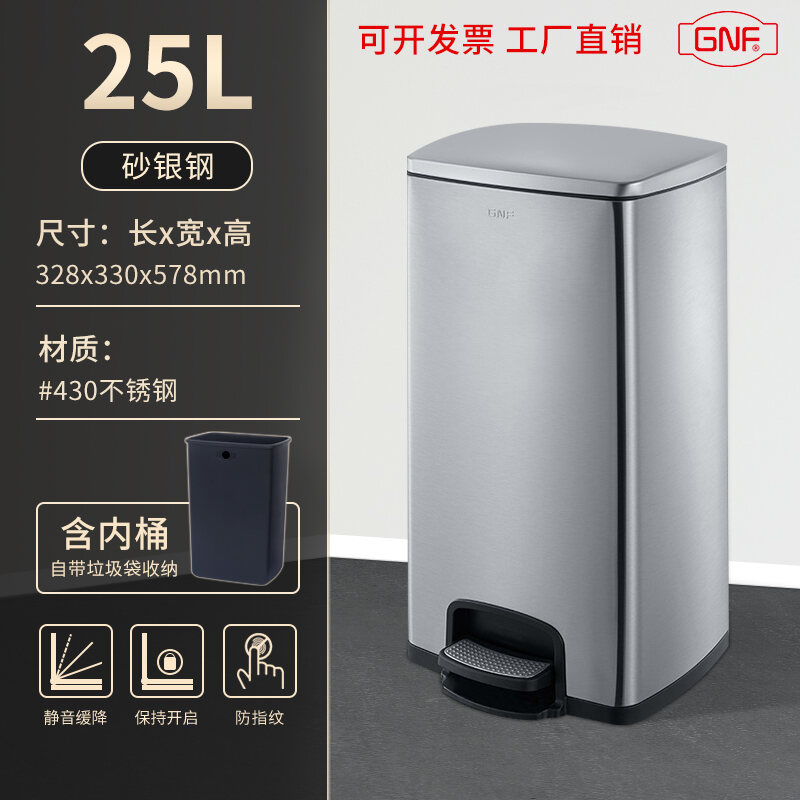 Stainless Steel Trash Can Household Pedal Square 20 Liters Bathroom Kitchen Large 25 Liters Commercial Office Storage