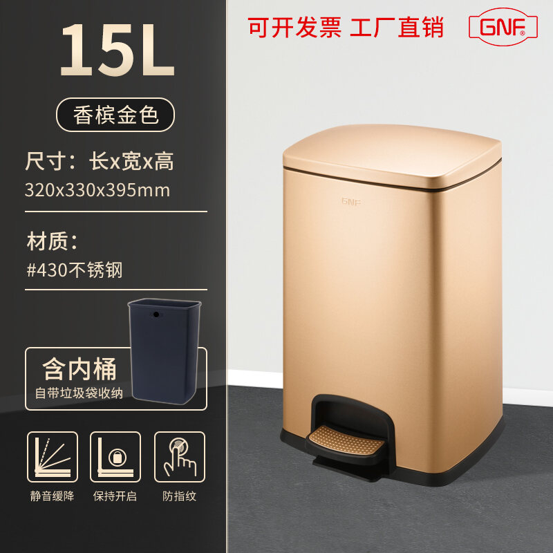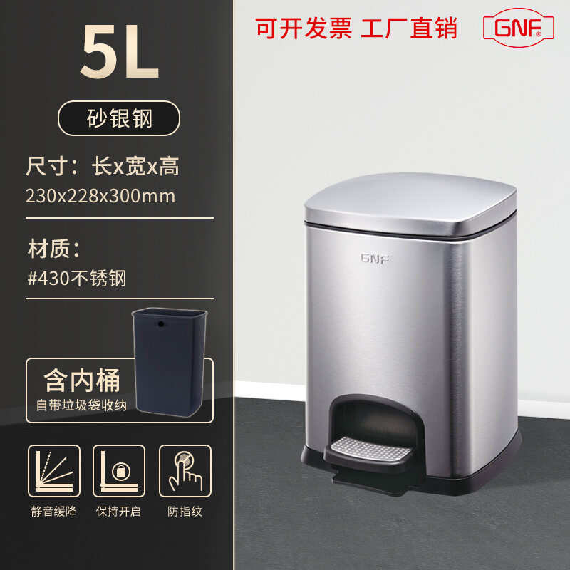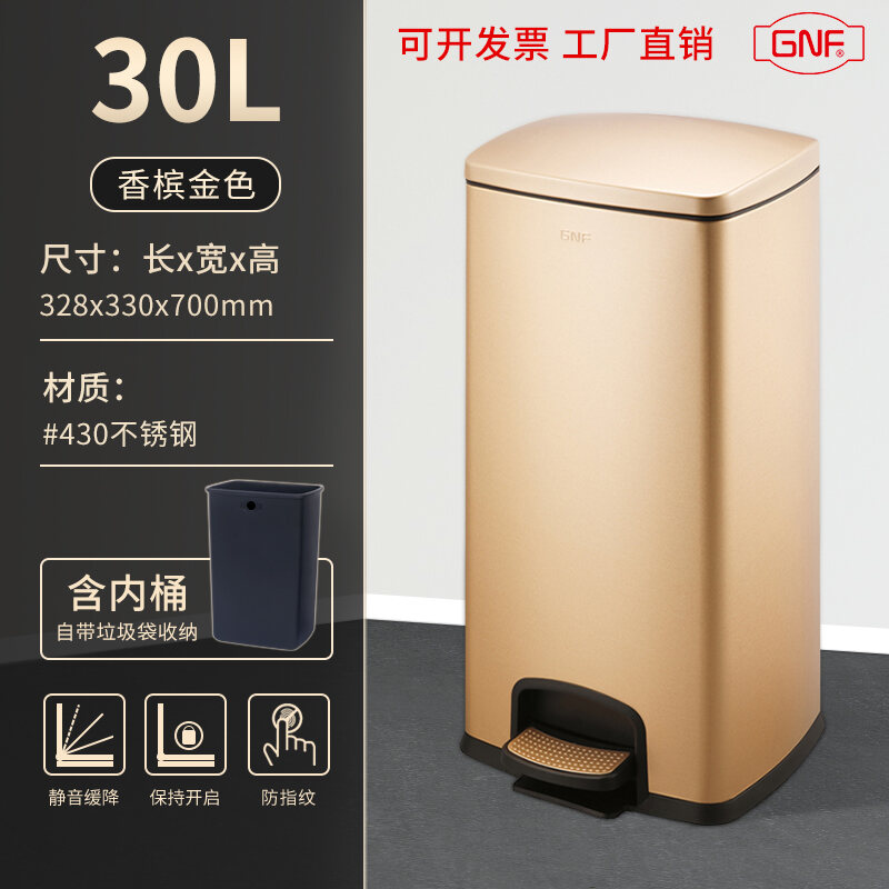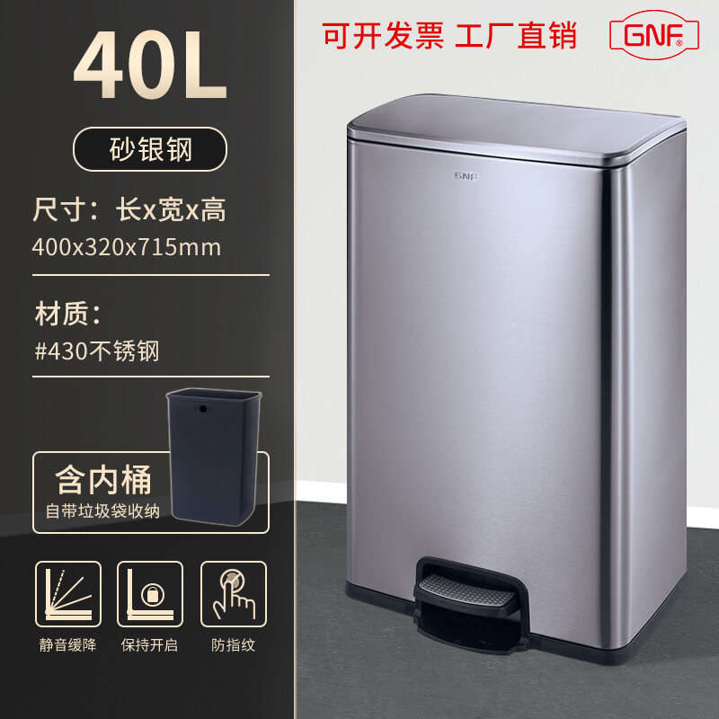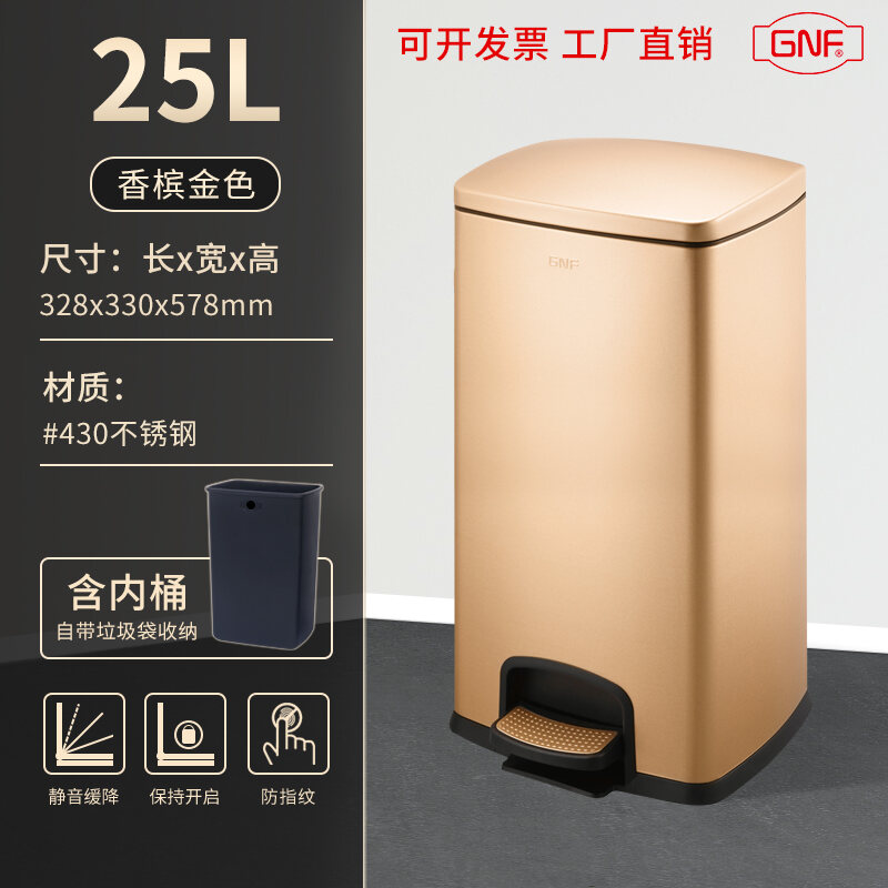 Stainless Steel Trash Can Household Pedal Square 20 Liters Bathroom Kitchen Large 25 Liters Commercial Office Storage