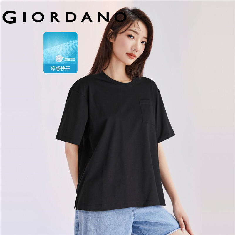 GIORDANO Women T-Shirts G-MOTION High-Tech Quick Dry Sorona T-Shirts Antibacterial Patch Pocket Simple Casual Sport Tee 05322222