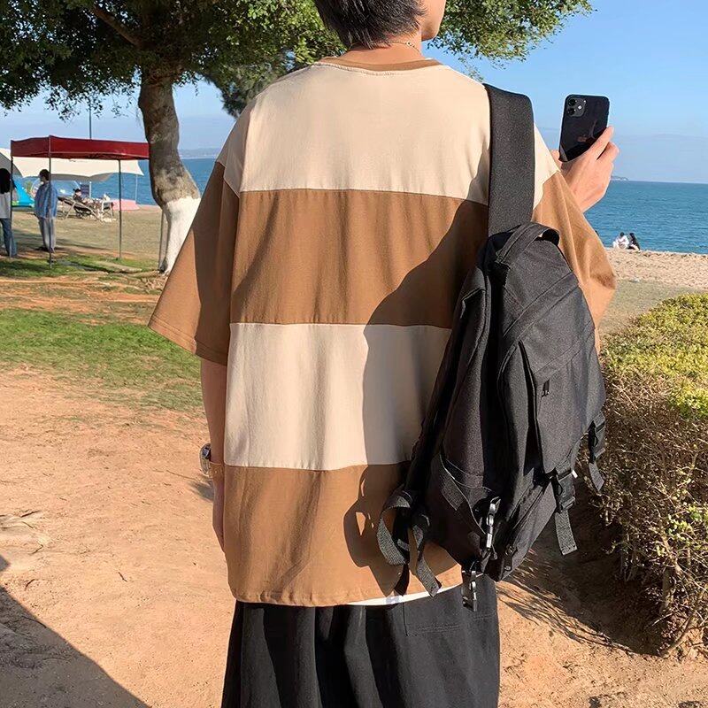 t shirt Men Korean Style Oversize Short Sleeve Fashion Tops Casual Contrast Color Block Print t-shirt