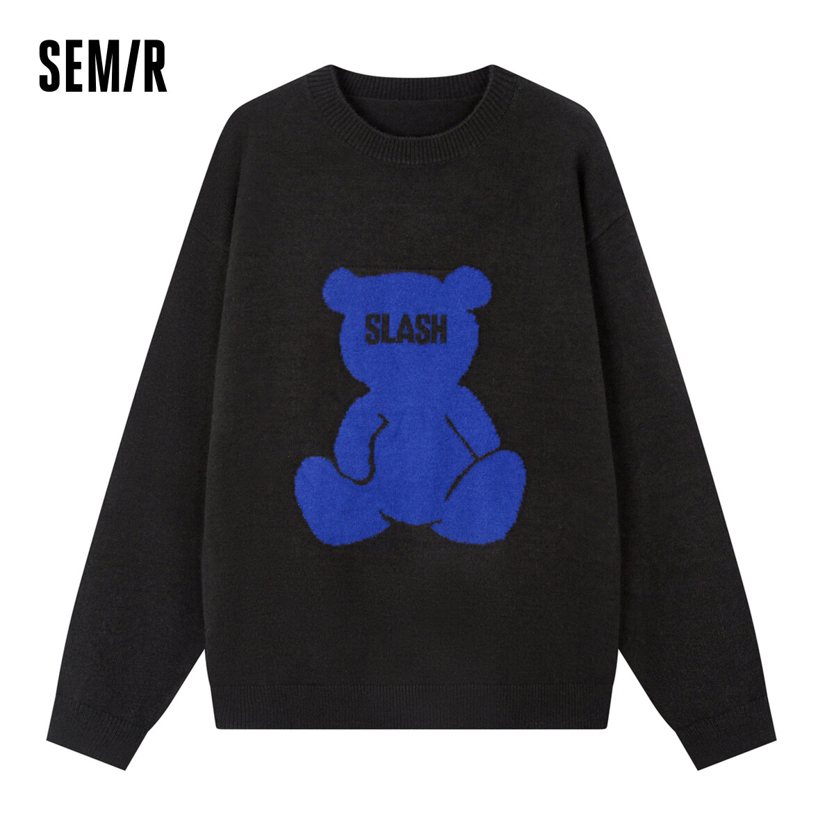 Semir Knitwear Men Cartoon Bear Jacquard Sweater 2022 Autumn New Men'S Fashion Loose Pullover Trend