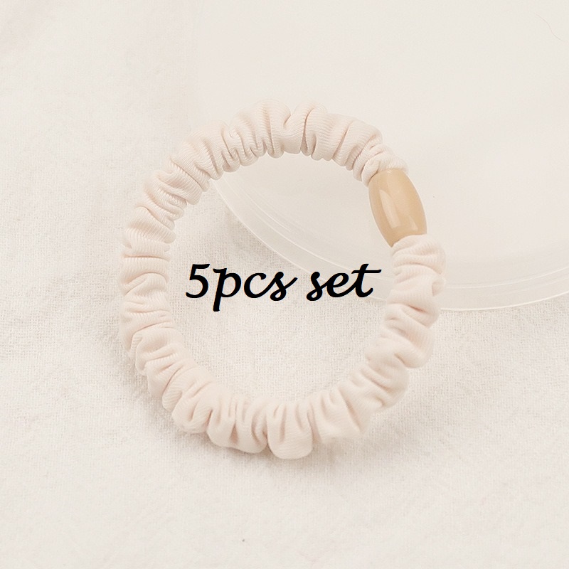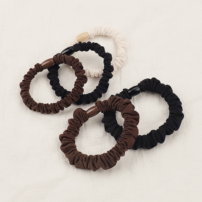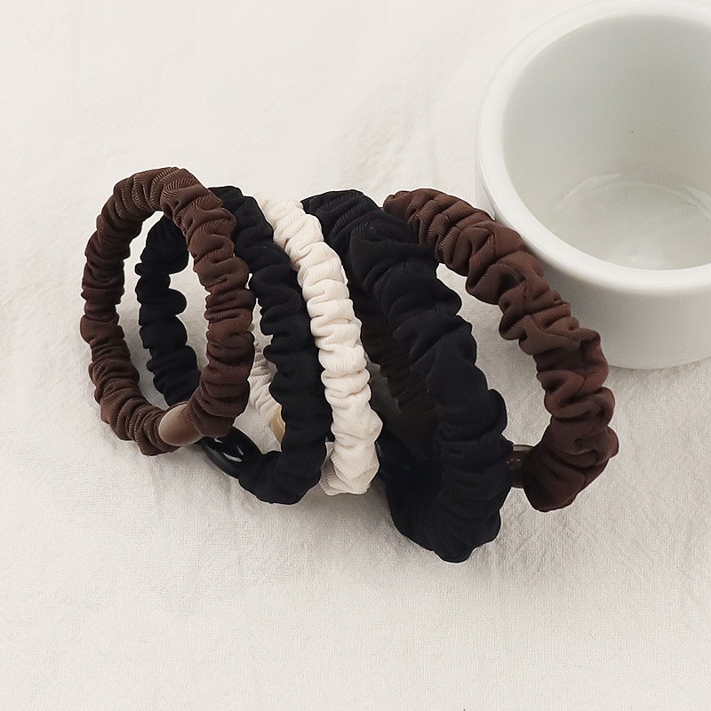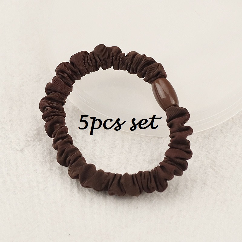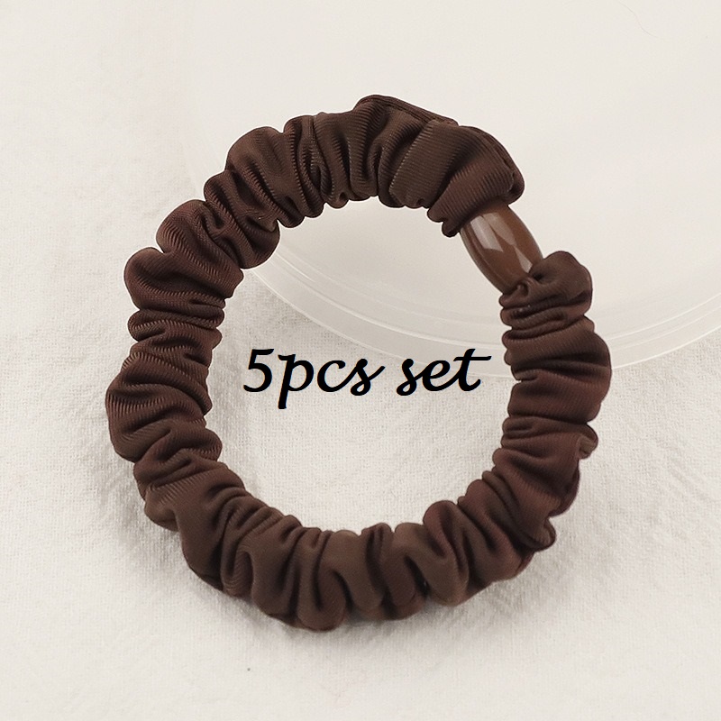 [SG | Smooth & Tight] 5pc Black Coffee Beige Color French Style 5-6cm Slim Hair Scrunchies Hair Tie Hair Band for School Office, Dress Up