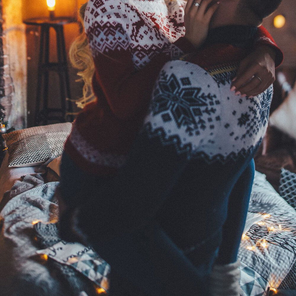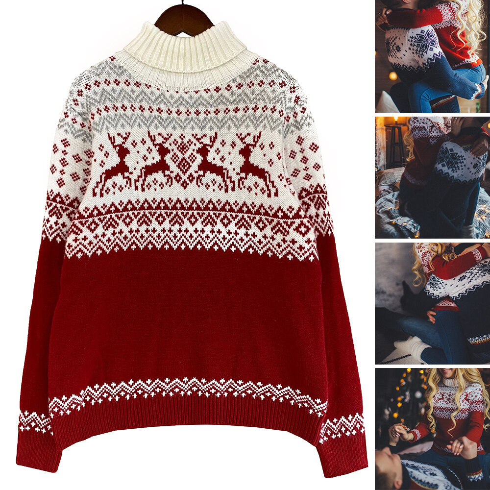 Christmas Sweater Couple Christmas Deer Snowflake Sweater Knitted O-neck Sweater Men Ladies Christmas Sweater All-match Daily Simple Pullover Female Male Long Sleeve Sweater Ugly Christmas Crew Neck S