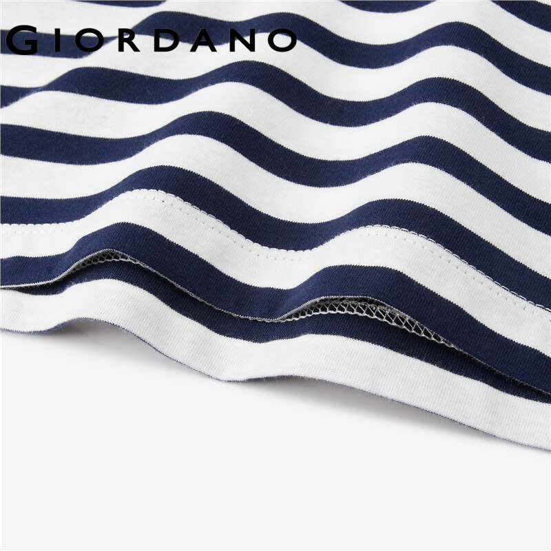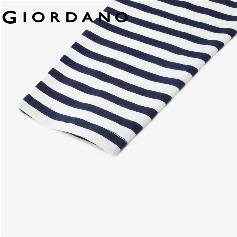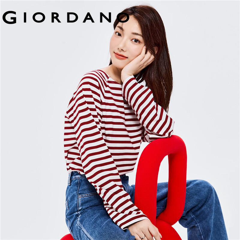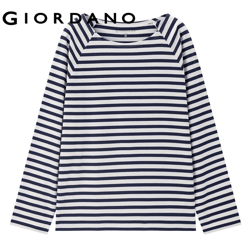 GIORDANO Women T-Shirts Contrast Color Stripe 100% Cotton Casual T-Shirts Long Raglan Sleeve Square Neck Comfy T-Shirts 13322770