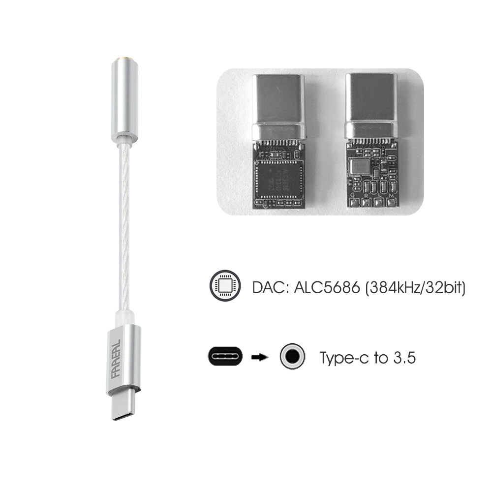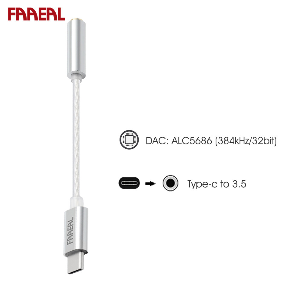 Faaeal Type-C To 3.5mm Audio Cable ALC5686 384kHz/32bit Headphone Amplifier USB DAC AMP Adapter 6N OCC Silver-plated Wire Decoding Headphone Converter Decoder For Win10 Android 4.0