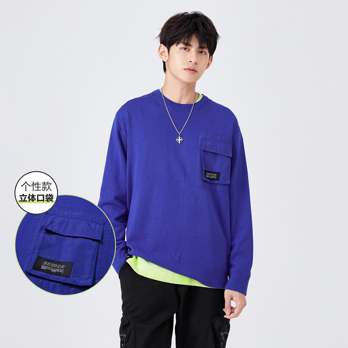 Semir Knitwear Men Fashion Fall Shoulder Korean Fan 2022 Spring New Oversize Men'S Round Neck Knitted Sweater