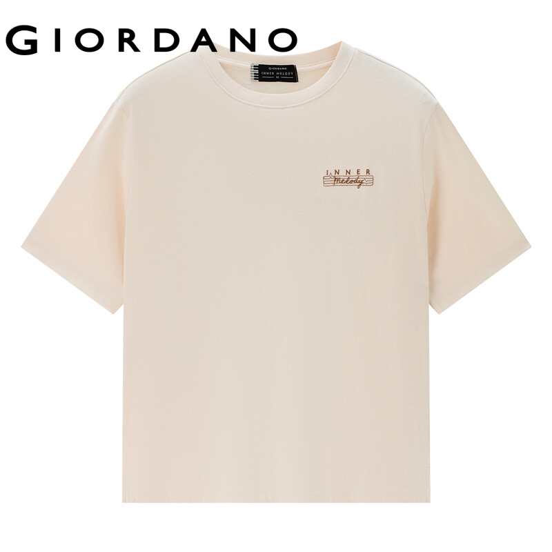 GIORDANO Women T-Shirts Music Print Graphic 100% Cotton Casual T-Shirts Short Sleeve Crewneck Summer Relaxed Simple Tee 05392322