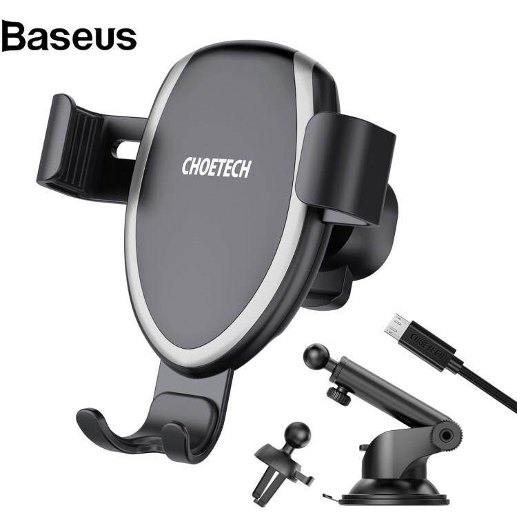 Baseus CHOETECH T536-S 10W Wireless Charger Gravity Auto Clamping Suction Cup Mount Phone Holder with Air Vent Clip