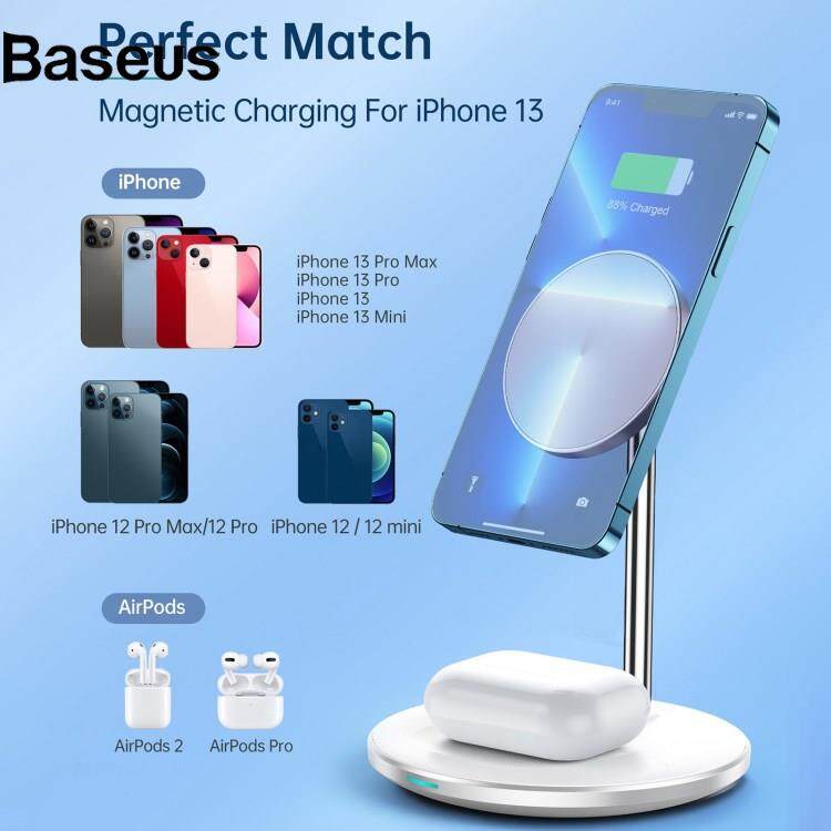 Baseus CHOETECH T581-F for iPhone / AirPods Pro 2 in 1 15W Magnetic Adsorption Wireless Charger Desktop Stand