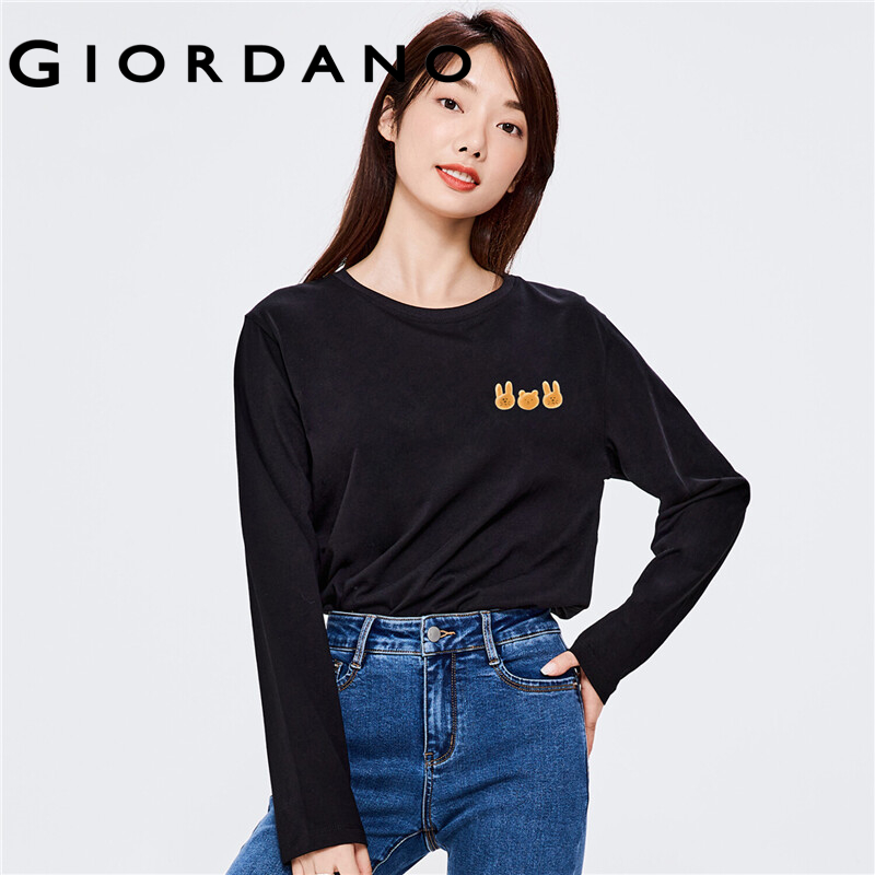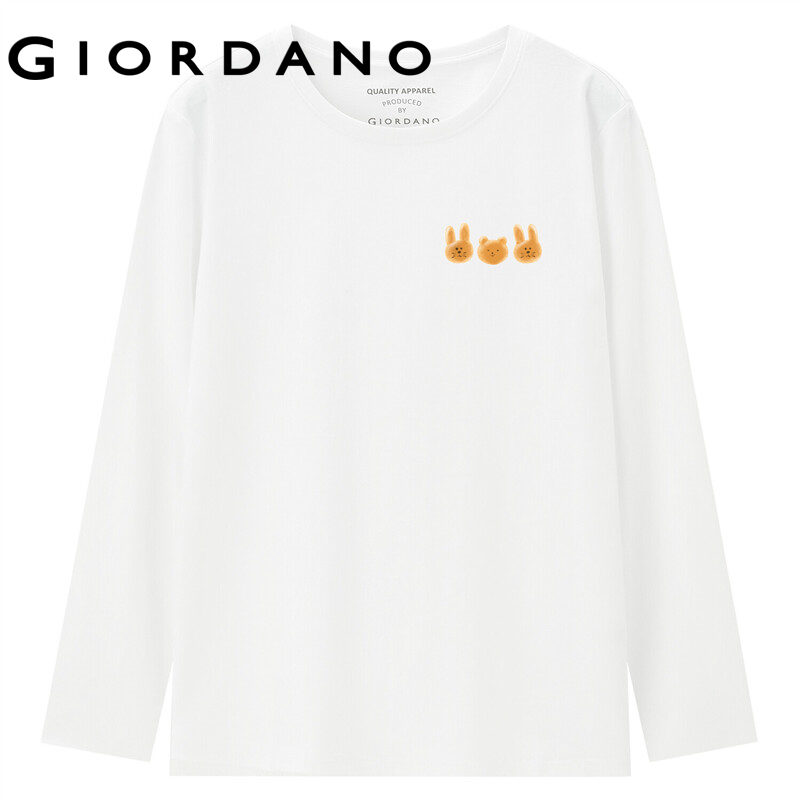 GIORDANO Women ZITA Series T-Shirts Cute Print Pattern Crewneck Simple Tee Long Sleeve 100% Cotton Casual T-Shirts 99392145