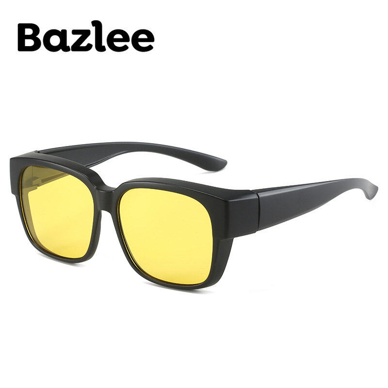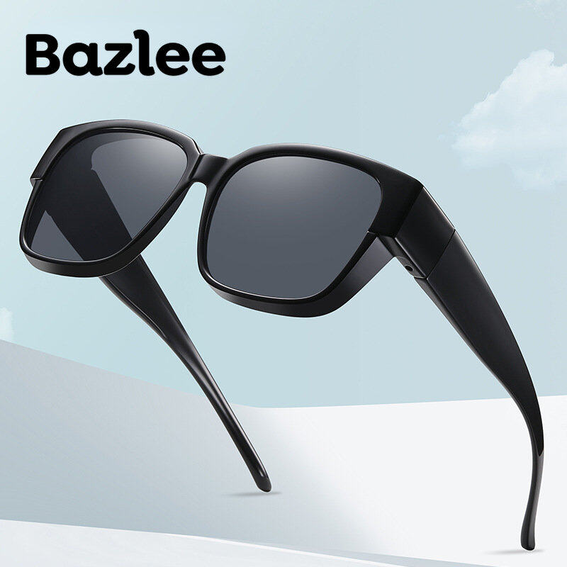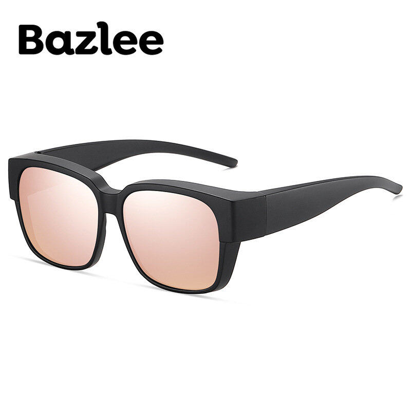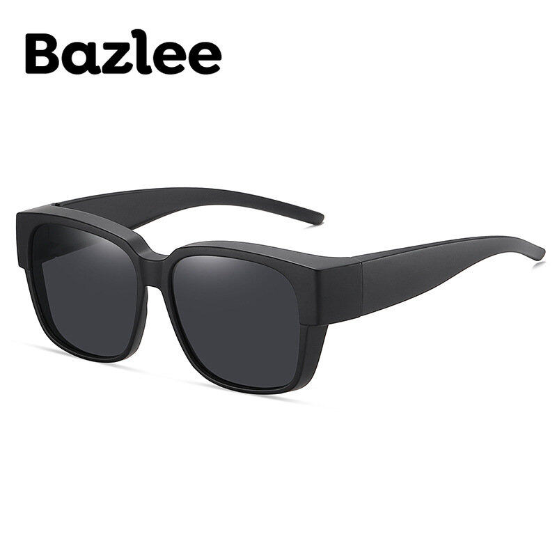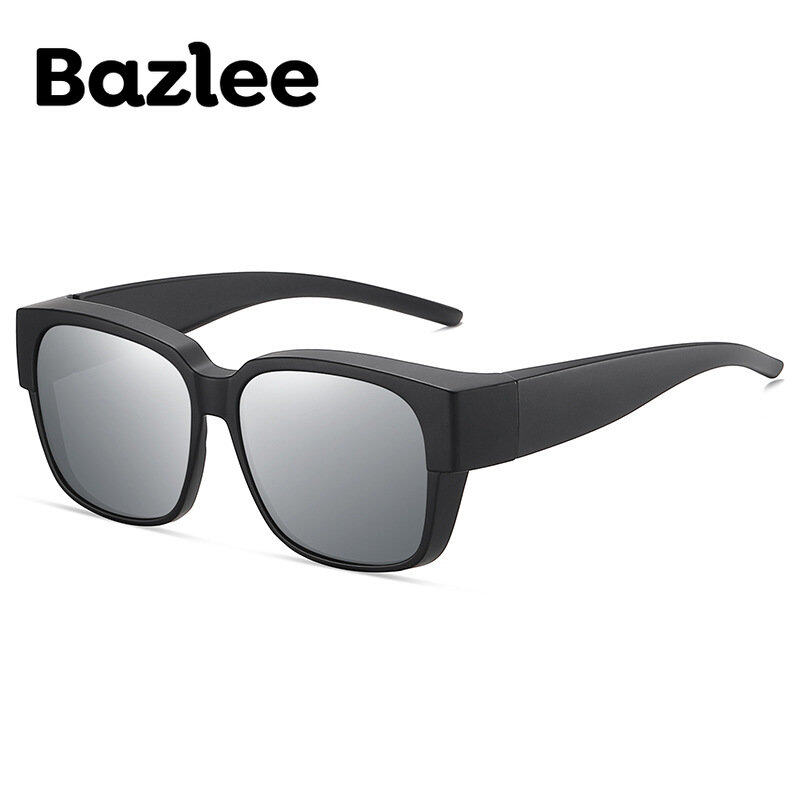 Bazlee Polarized Fit Over Sunglasses for Men Women Unisex Glasses Mirror Square Trends Glasses Outdoor Driving Shades Camping Hiking Fishing Oculos De Sol Femininos