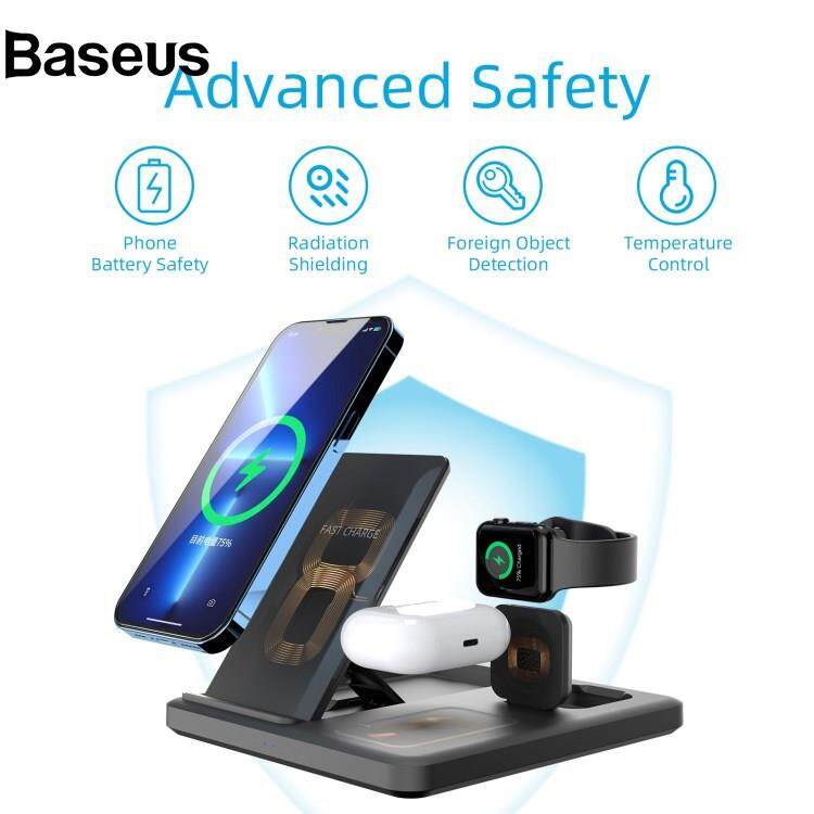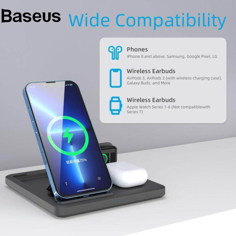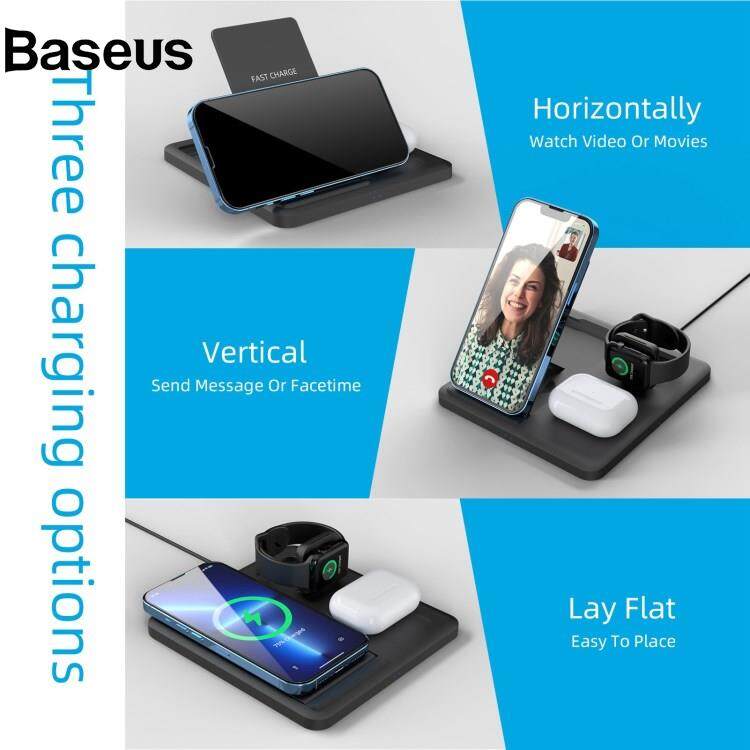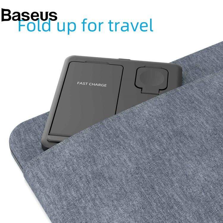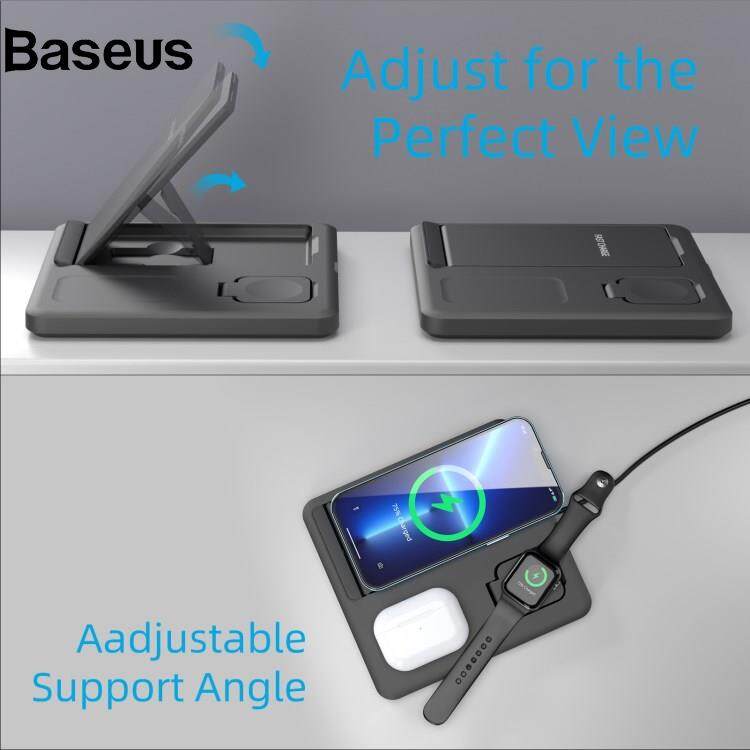Baseus C18 15W Wireless Charging Stand for iPhone / Apple Watch / AirPods Pro 3-in-1 Adjustable Angle Folding Charger