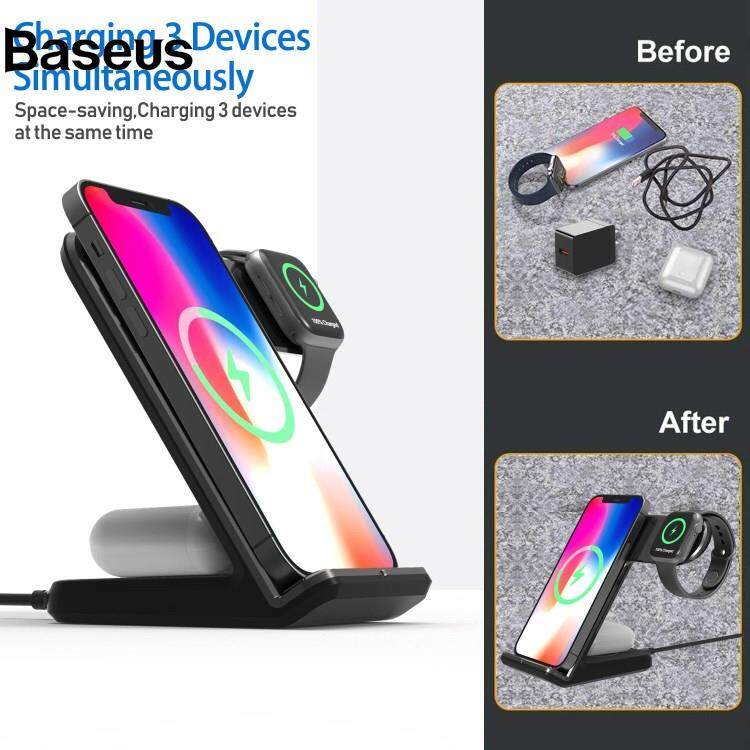 Baseus F11 Pro 3 in 1 Wireless Charger 15W Fast Charging Station for iPhone / Samsung / Apple Watch / TWS Earphones