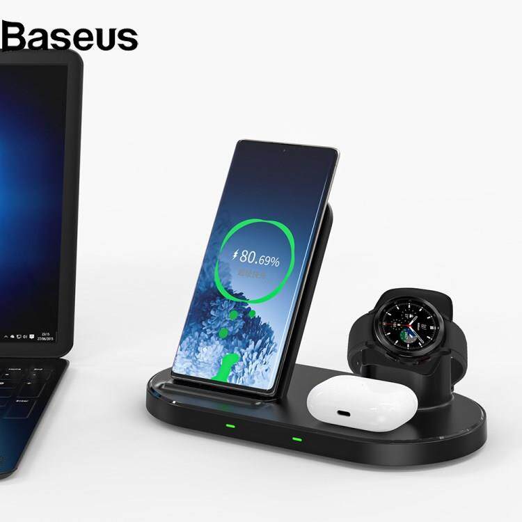 Baseus W55 3 in 1 15W Fast Charging Magnetic Wireless Charger Desktop Station Dock for Mobile Phone / Smart Watch / Headphones (Upgraded Version)
