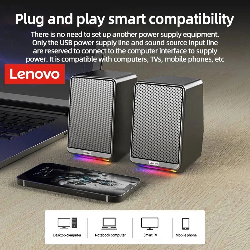 Lenovo TS38 Computer Desktop Speaker Wired Rgb Soundbar with Subwoofer USB Binaural 6D Powerful Tweeter Mini Speakers for TV Som