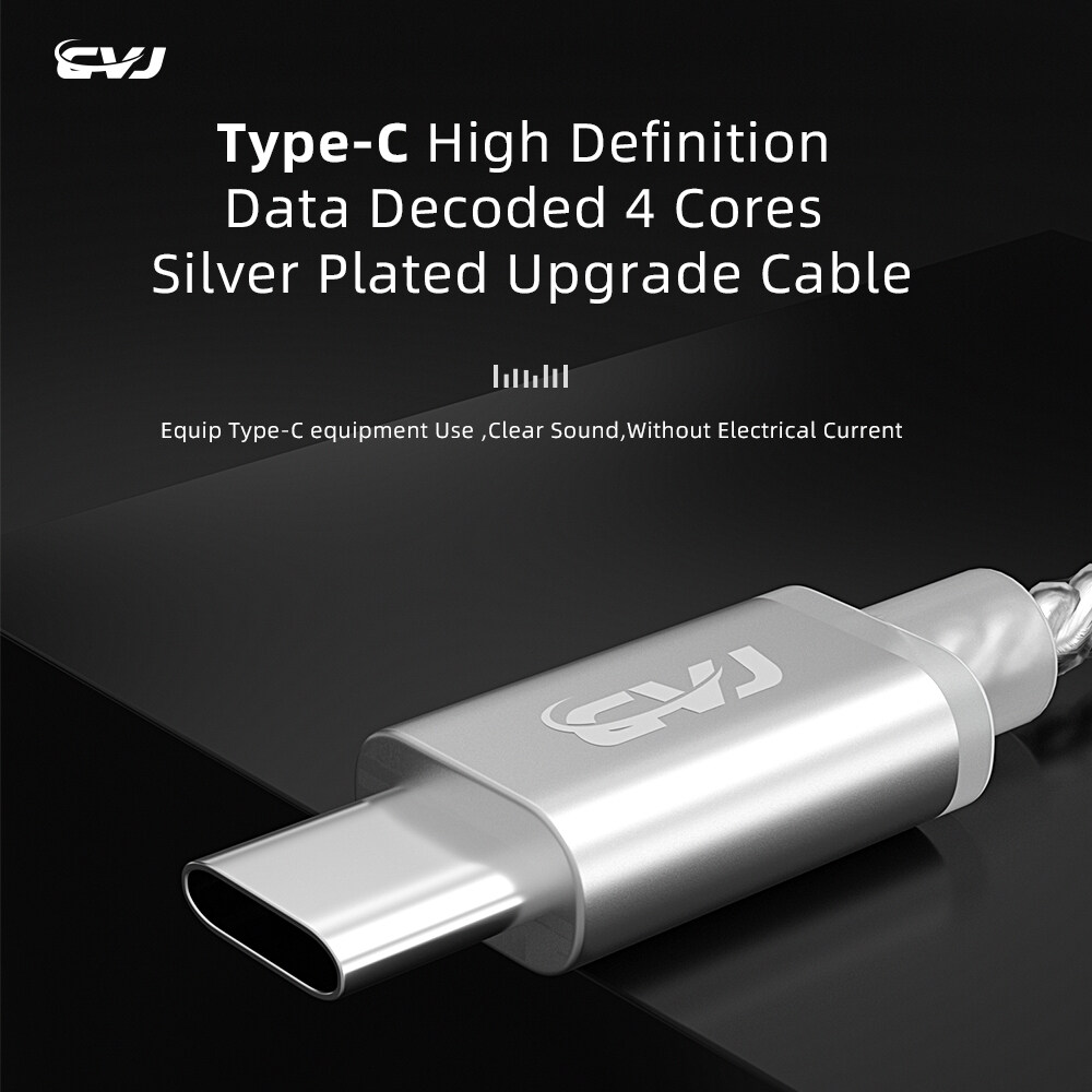 Type-C High Definition Data Decoded 4 Cores Silver Plated Upgrade Cable