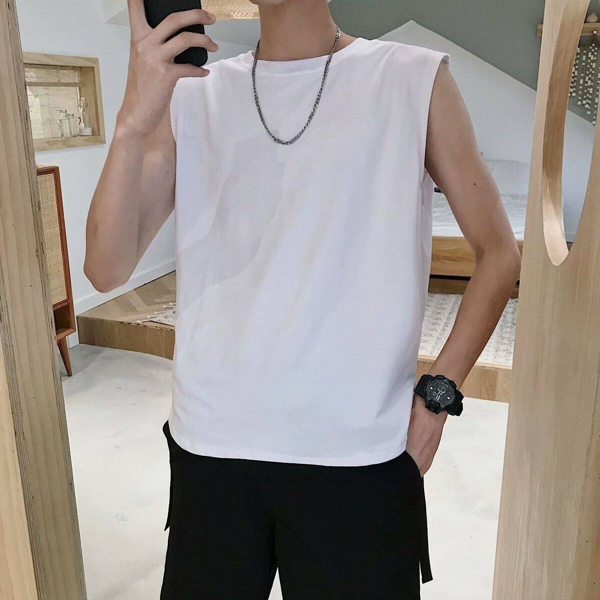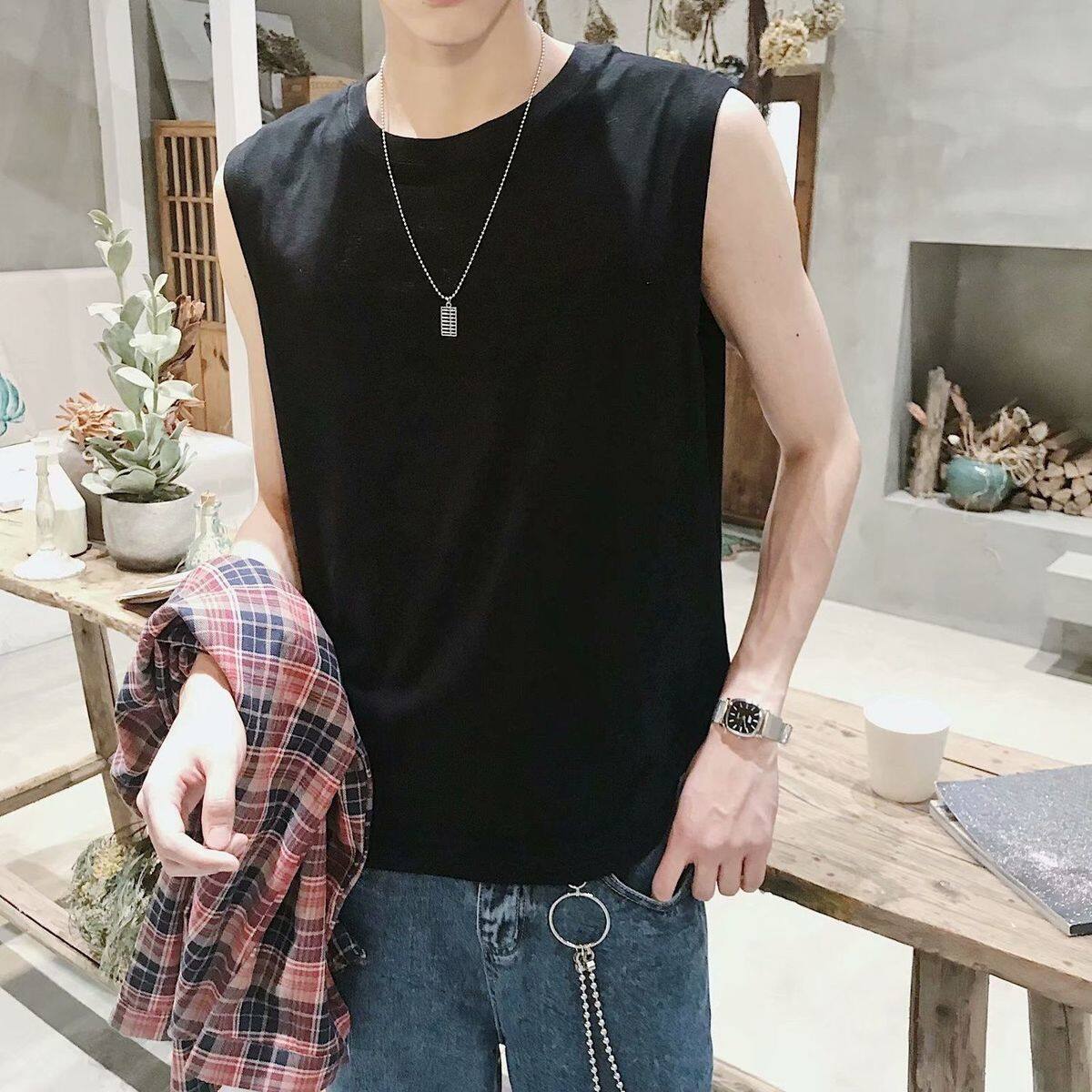 S-3XL t shirt Men Korean Style Sleeveless Fashion Tops Casual Plain Vest