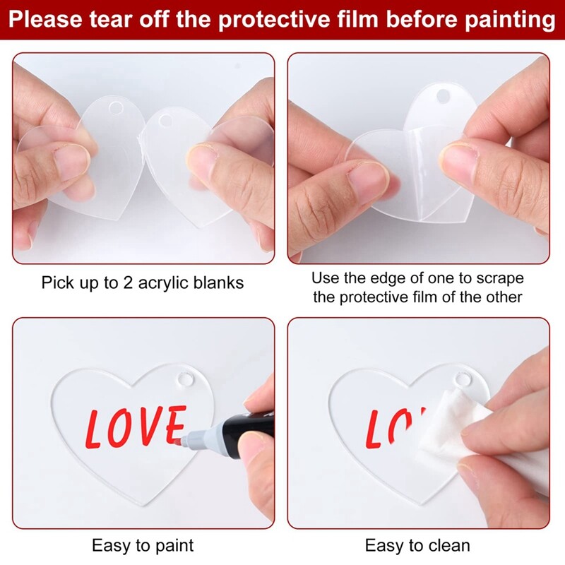 What's Included: You will get 60 pieces heart shaped acrylic blanks with hole, enough quantity for your various DIY projects needs and share with your friends