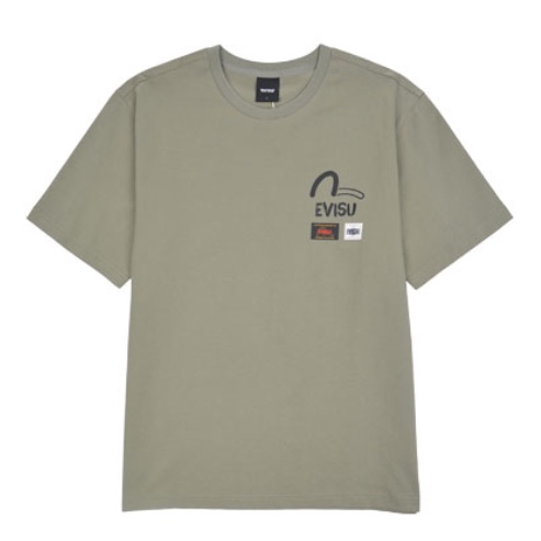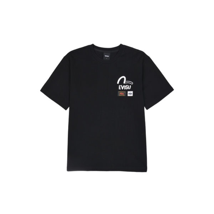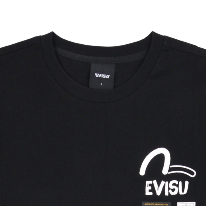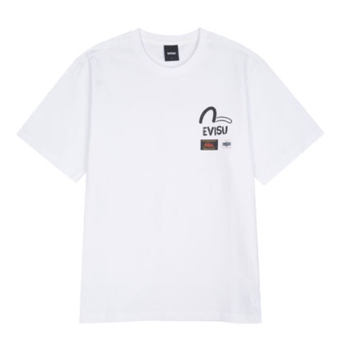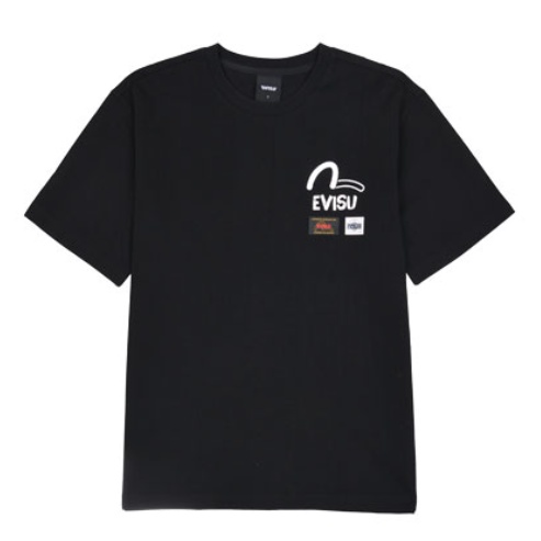 [EVISU KOREA] 100% Authentic Unisex Labels Print loose fit Short-sleeve T-shirt