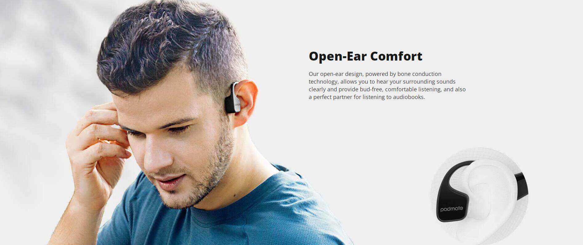 Original Padmate S30 Bone Conduction Open-Ear Sport Earbuds IPX5 Waterproof Long Battery Life Bluetooth 5.0 Earphone Lightweight