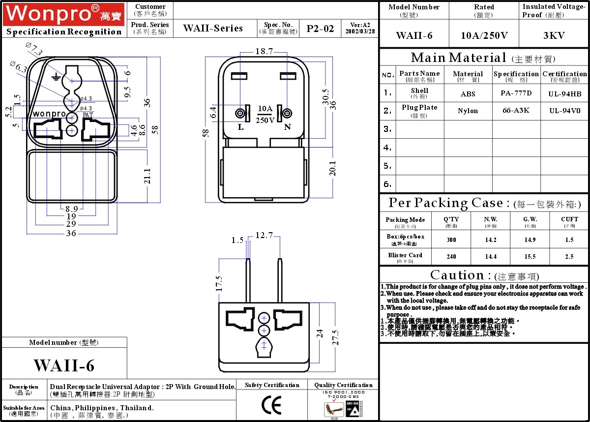 WONPRO WAII SERIES TRAVEL ADAPTER