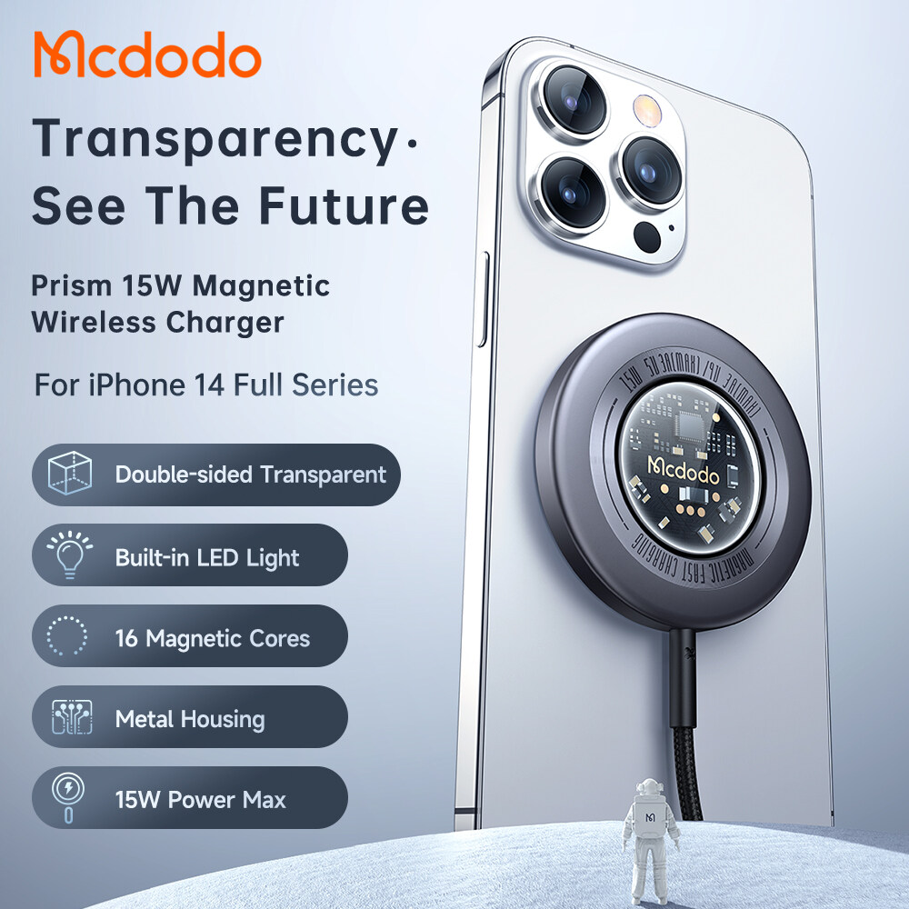 Mcdodo 15W transparent Magnetic Magsafe Charger For apple 14 Wireless Charger Magsafe For Android Charger