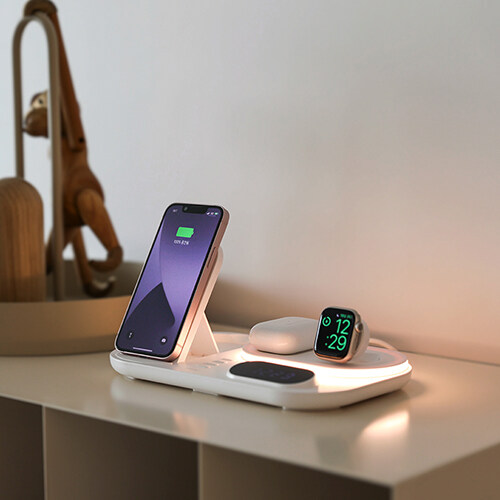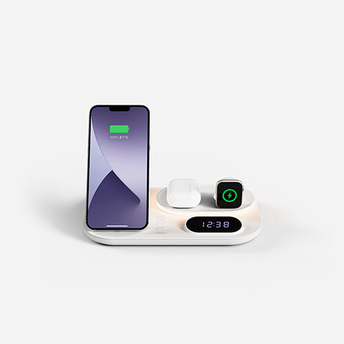 mooas All-Rounder 4 in 1 Fast Wireless Charging nightlight Clock, Wireless Charging Station with LED Clock, Compatible with iPhone 12, Galaxy S22, LG V50 and Newer, Airpods, Galaxy Buds, Apple Watch