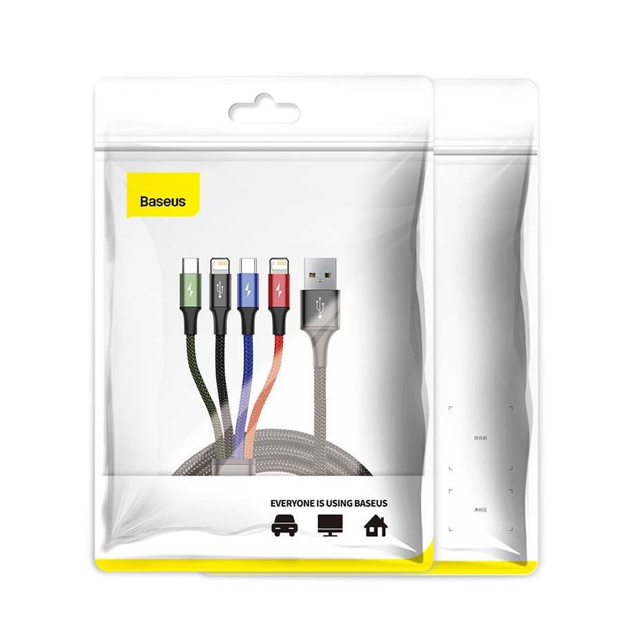 Baseus 4 in 1 USB Cable IP+Micro USB+Type-C Port For iphone 12 Pro Max 11 XS XR Samsung S10 Xiaomi 10 Fast Charging Data Cable
