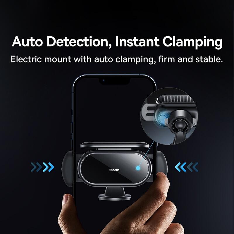 Baseus Phone Holder in Car Solar Battery Electric Auto Clamping Car Cell Phone Stand GPS Support Xiaomi Car Mount For iPhone
