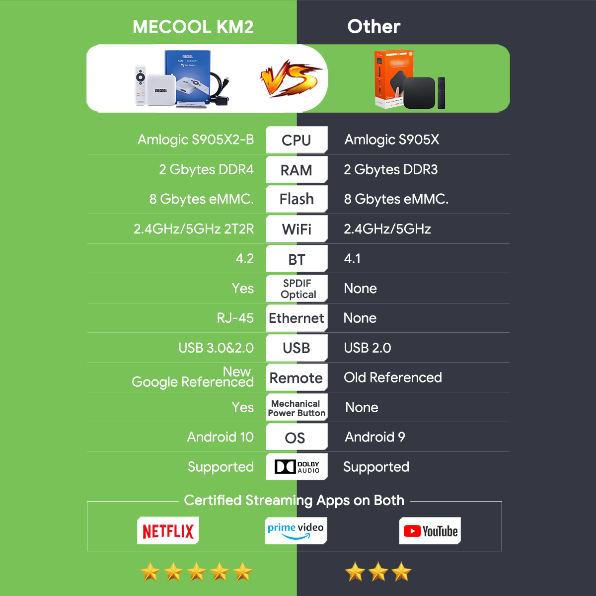 Mecool KM2 Android 10 TVBox Amlogic S905X2 4K Dolby Dual Wifi Prime Video Set TopBox