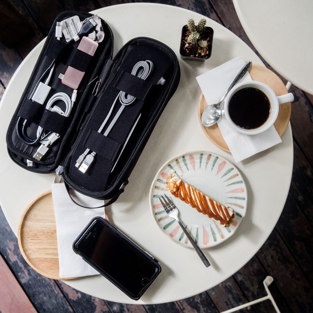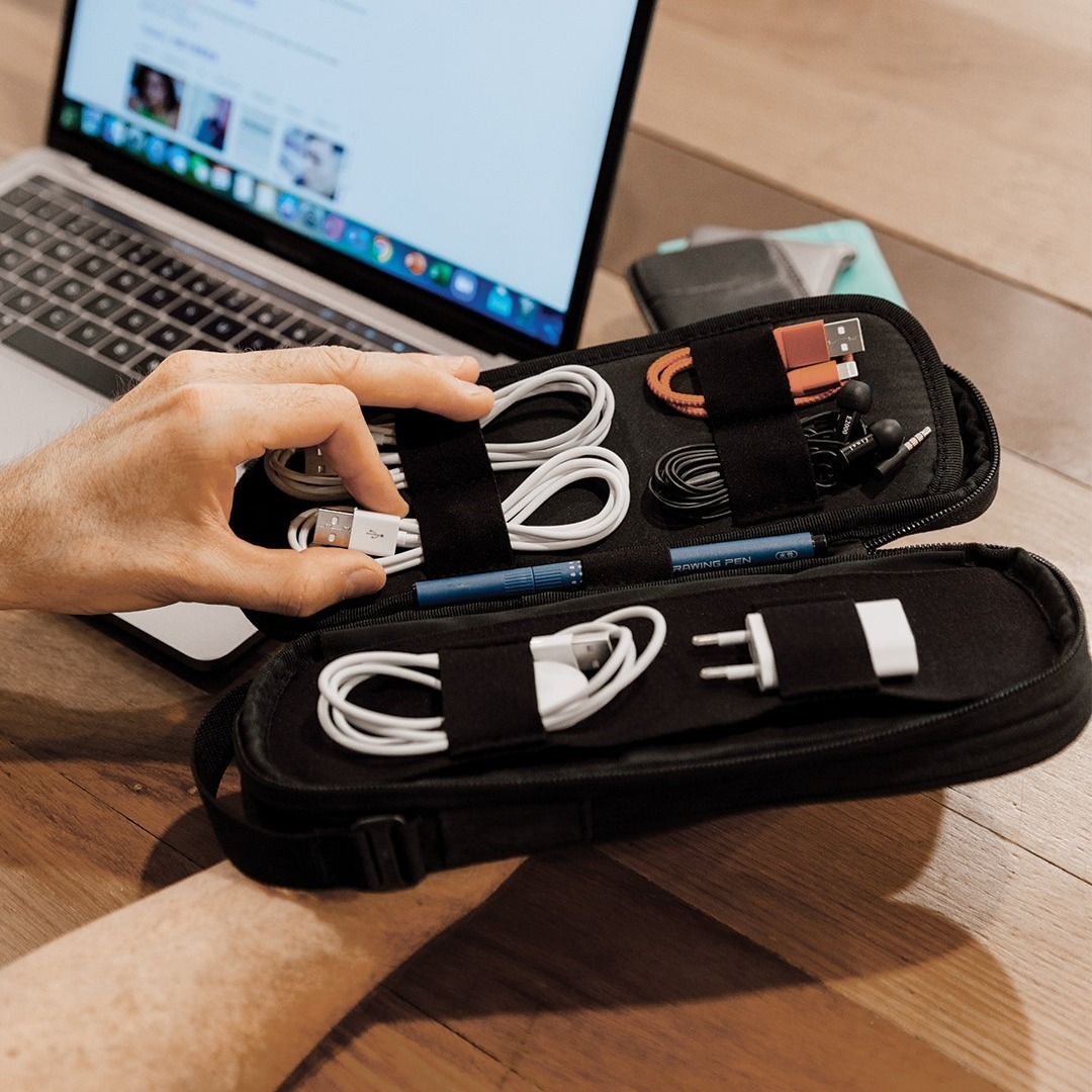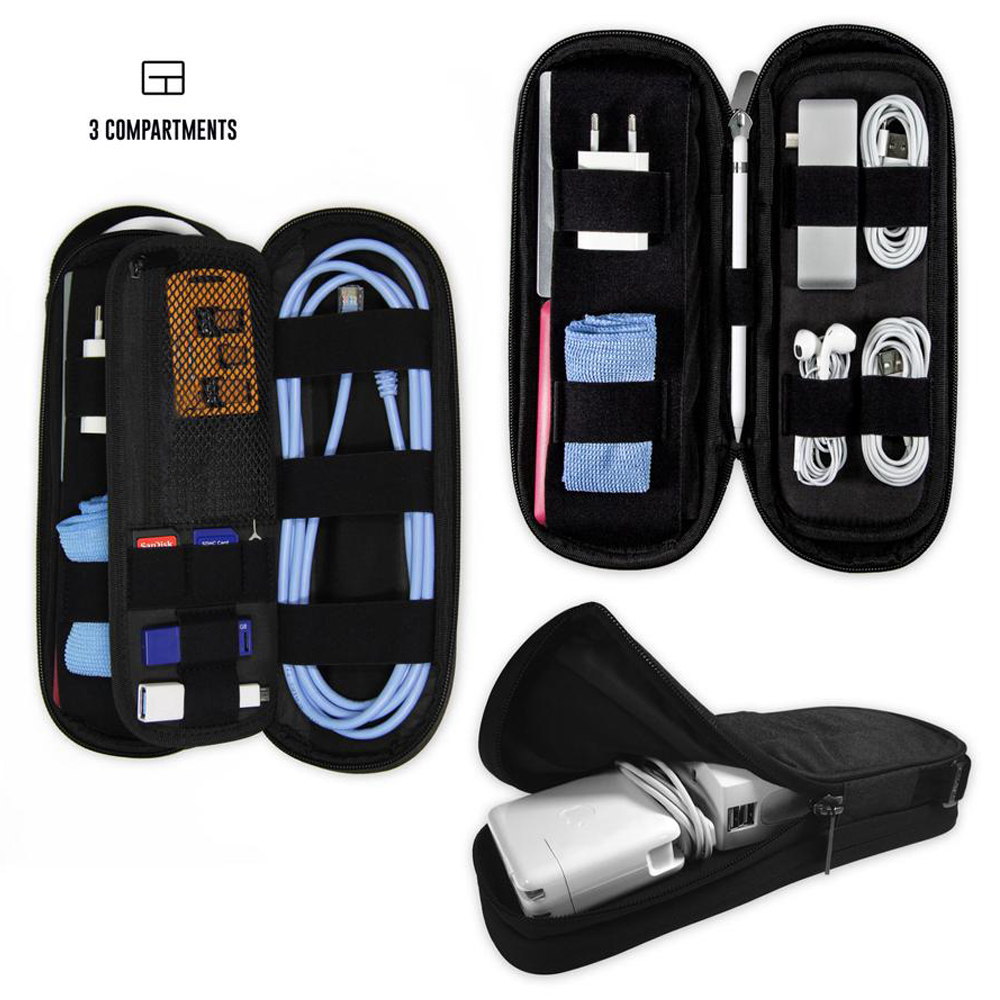 Lune Electronic Organizer Bag Power Bank Pouch 2 layers Large Capacity Storage Bag for Mobile power, Electronic Accessories USB Cable Charger Traveling Storage Bags