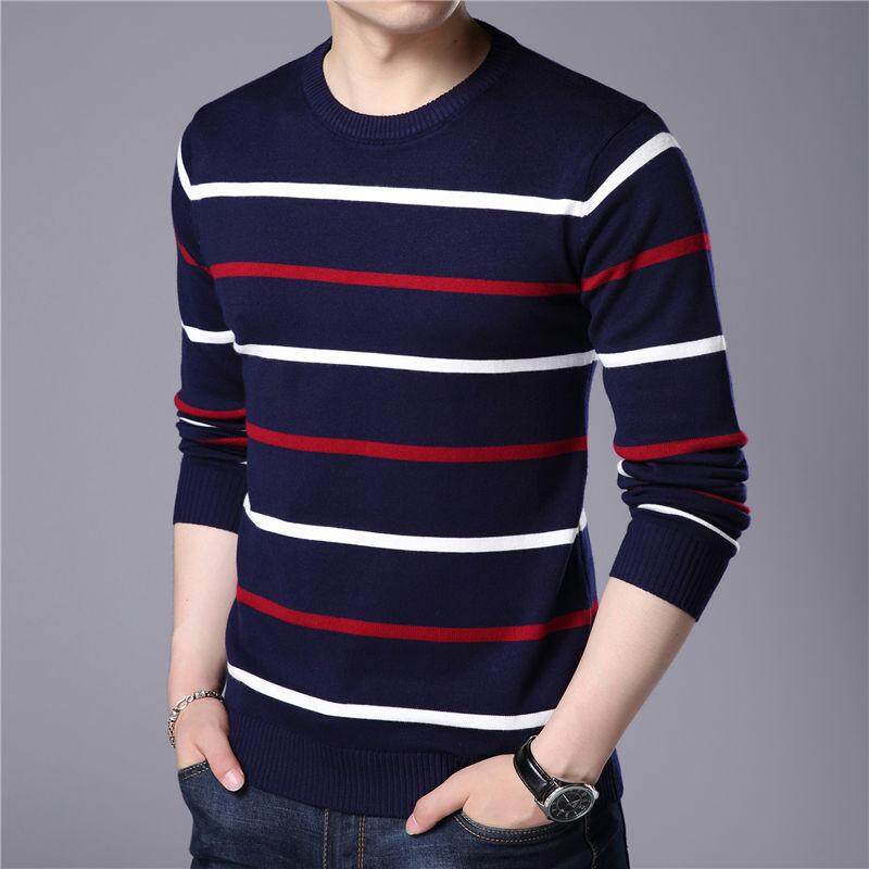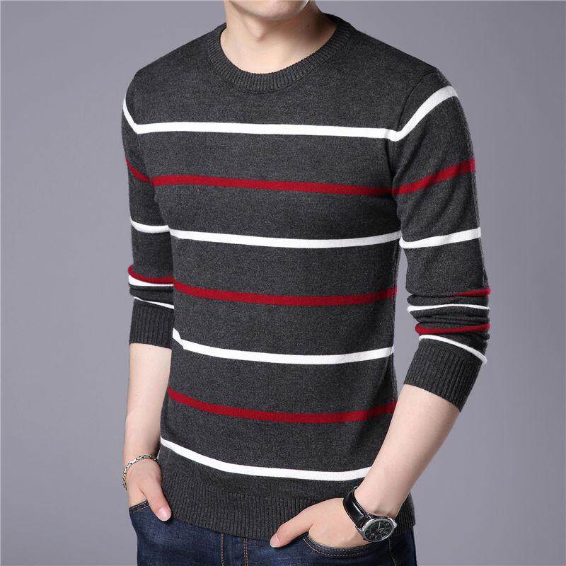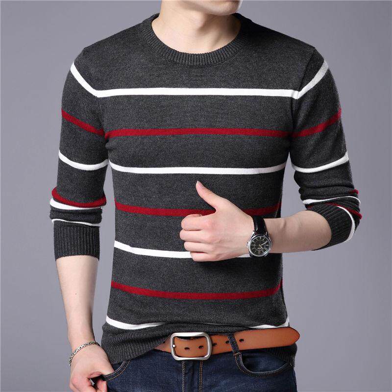Cozy Up O-Neck Pullover Men Brand Autumn Winter New Arrival Cashmere Wool Sweater Men Casual Striped Pull Men