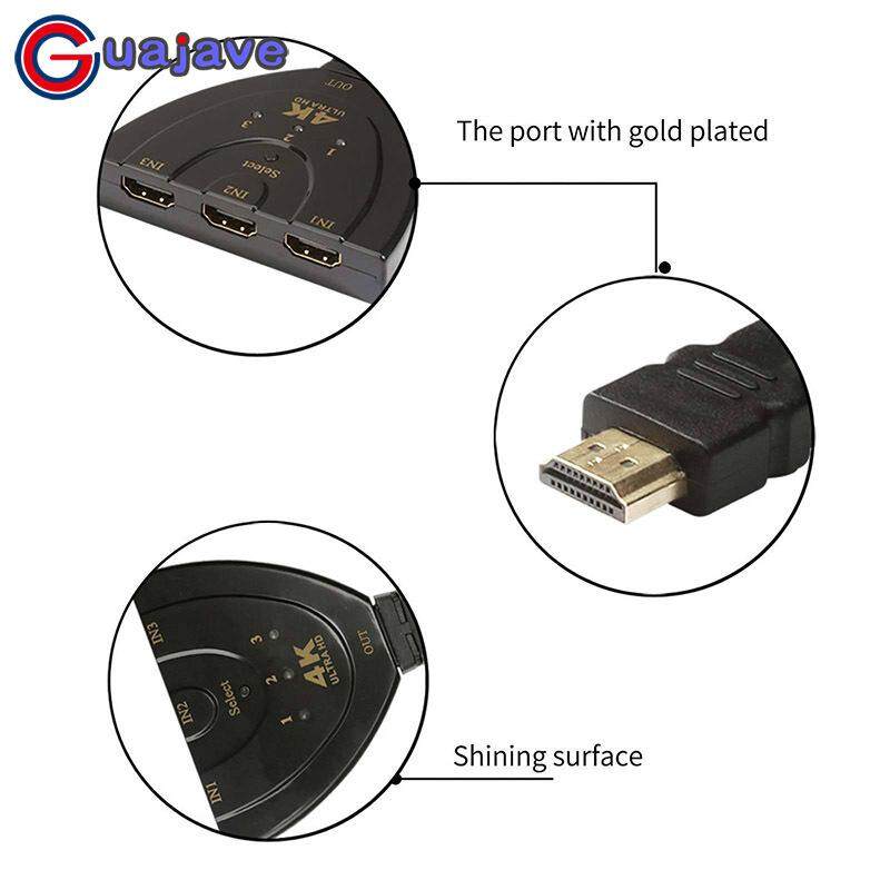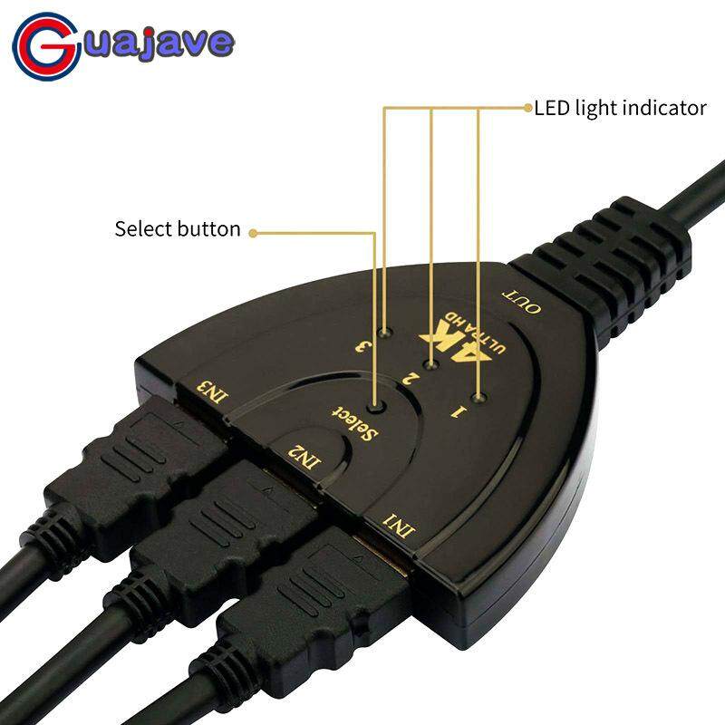 Guajave 3 Port HDMI Switch Splitter Cable 4K*2K 2160P Multi Switcher HUB for LCD HDTV PS Xbox