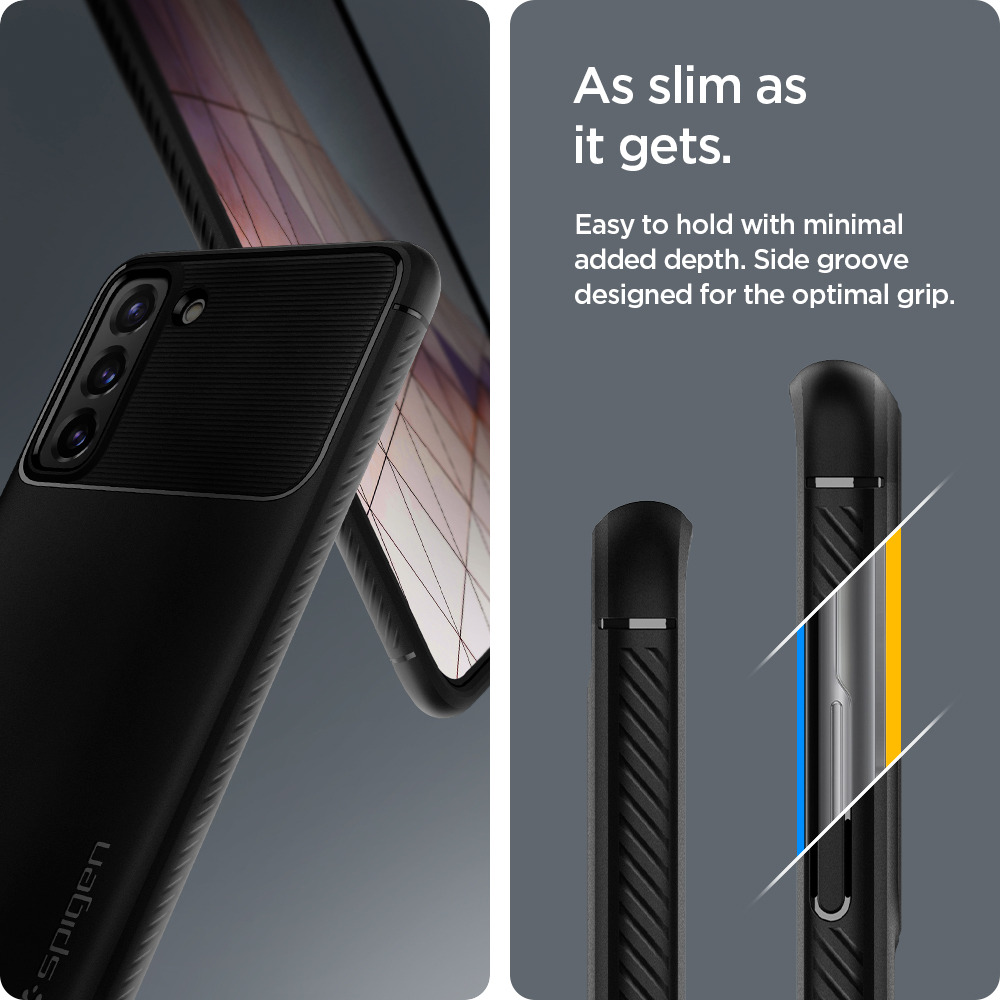 Inspired by car design, Rugged Armor® secures the device in a timeless and streamlined body. Its slim frame is textured with carbon fiber detailing and subtle glossy accents. Timeless design with amplified quality and overall protection.