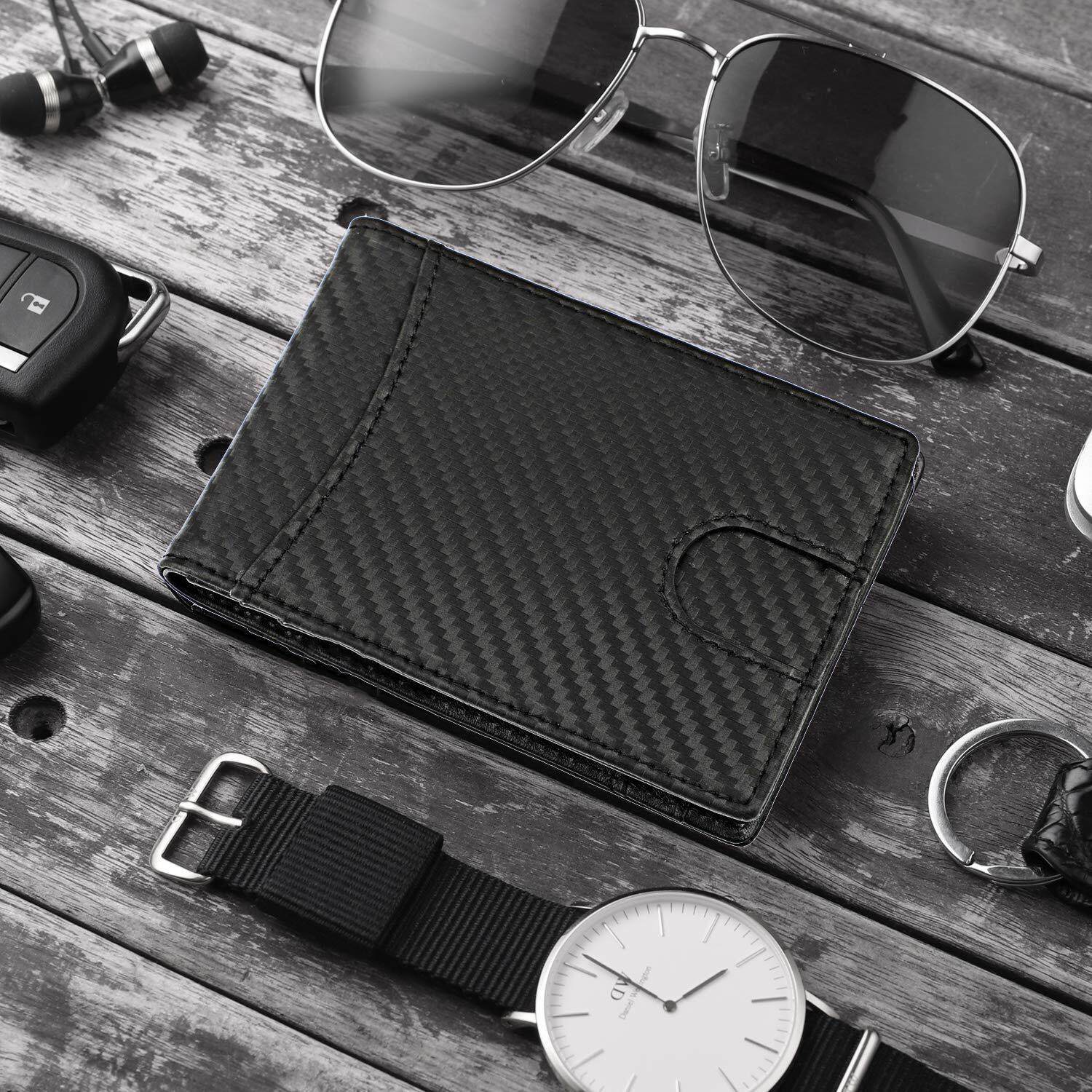 Genuine Leather Mens Wallet, RFID Blocking Carbon Fiber ID Wallet Slim Credit Card Holder Minimalist by SLGOL-direct