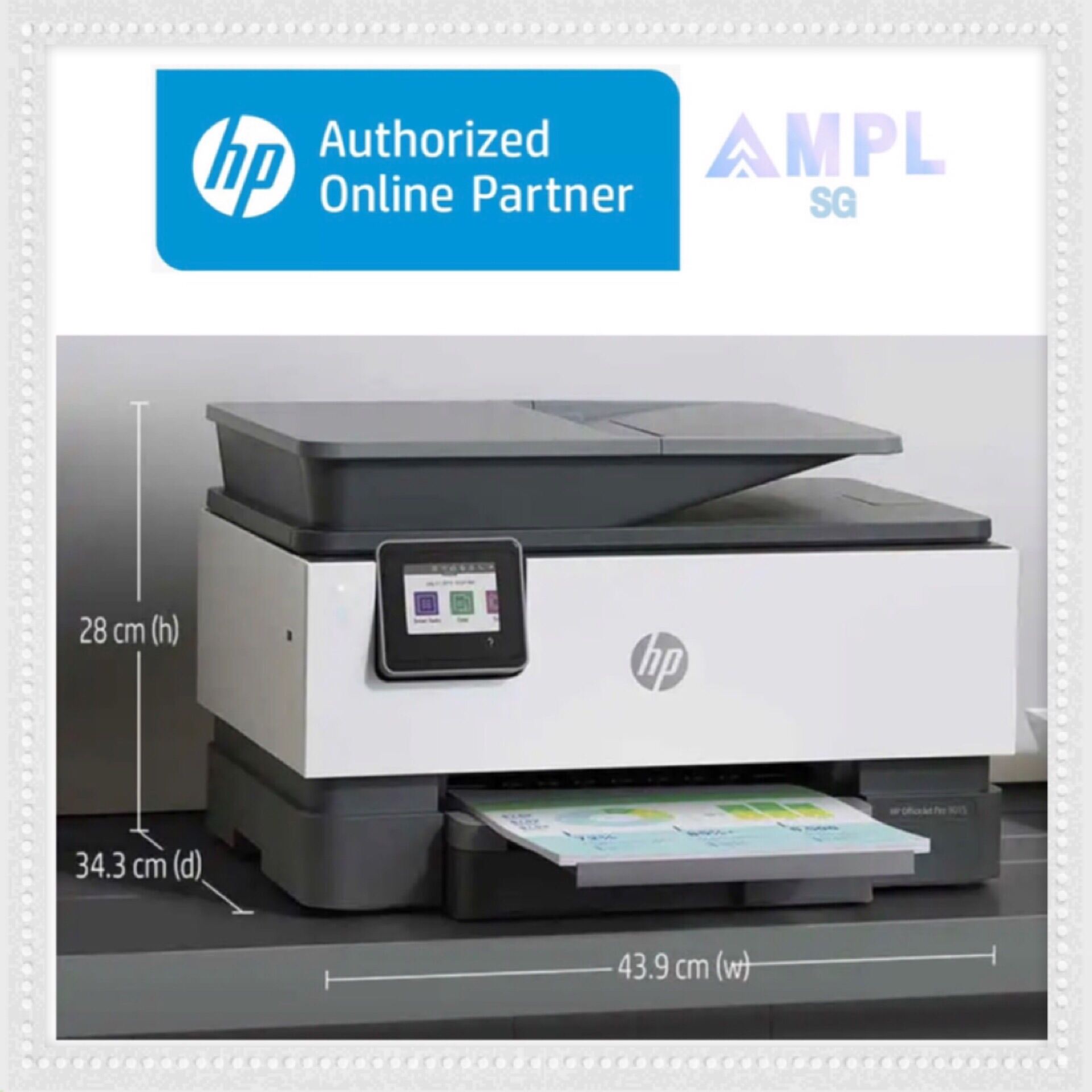 | Country of origin | Product of Thailand | What's in the box | HP OfficeJet Pro 9010e All-in-One Printer; HP 965 Setup Black Ink Cartridge; HP 965 Setup Cyan Ink Cartridge; HP 965 Setup Magenta Ink Cartridge; HP Setup 965 Yellow Original Ink Cartridge; Regulatory Flyer; Ink Caution Flyer; Power Cord; Setup Poster; Reference Guide; | Cable included | No, please purchase (USB) cable, and (phone) cord separately | Replacement cartridges | HP 965 Black Original Ink Cartridge (~1,000 pages) 3JA80AA; HP 965 Cyan Original Ink Cartridge (~700 pages) 3JA77AA; HP 965 Magenta Original Ink Cartridge (~700 pages) 3JA78AA; HP 965 Yellow Original Ink Cartridge (~700 pages) 3JA79AA; HP 965XL Black Original Ink Cartridge (2,000 pages) 3JA84AA; HP 965XL Cyan Original Ink Cartridge (1,600 pages) 3JA81AA; HP 965XL Magenta Original Ink Cartridge (1,600 pages) 3JA82AA; HP 965XL Yellow Original Ink Cartridge (1,600 pages) 3JA83AA. | Software included | HP Printer Software, Shop for Supplies Online | Manufacturer Warranty | One-year limited hardware warranty by HP Singapore Direct |